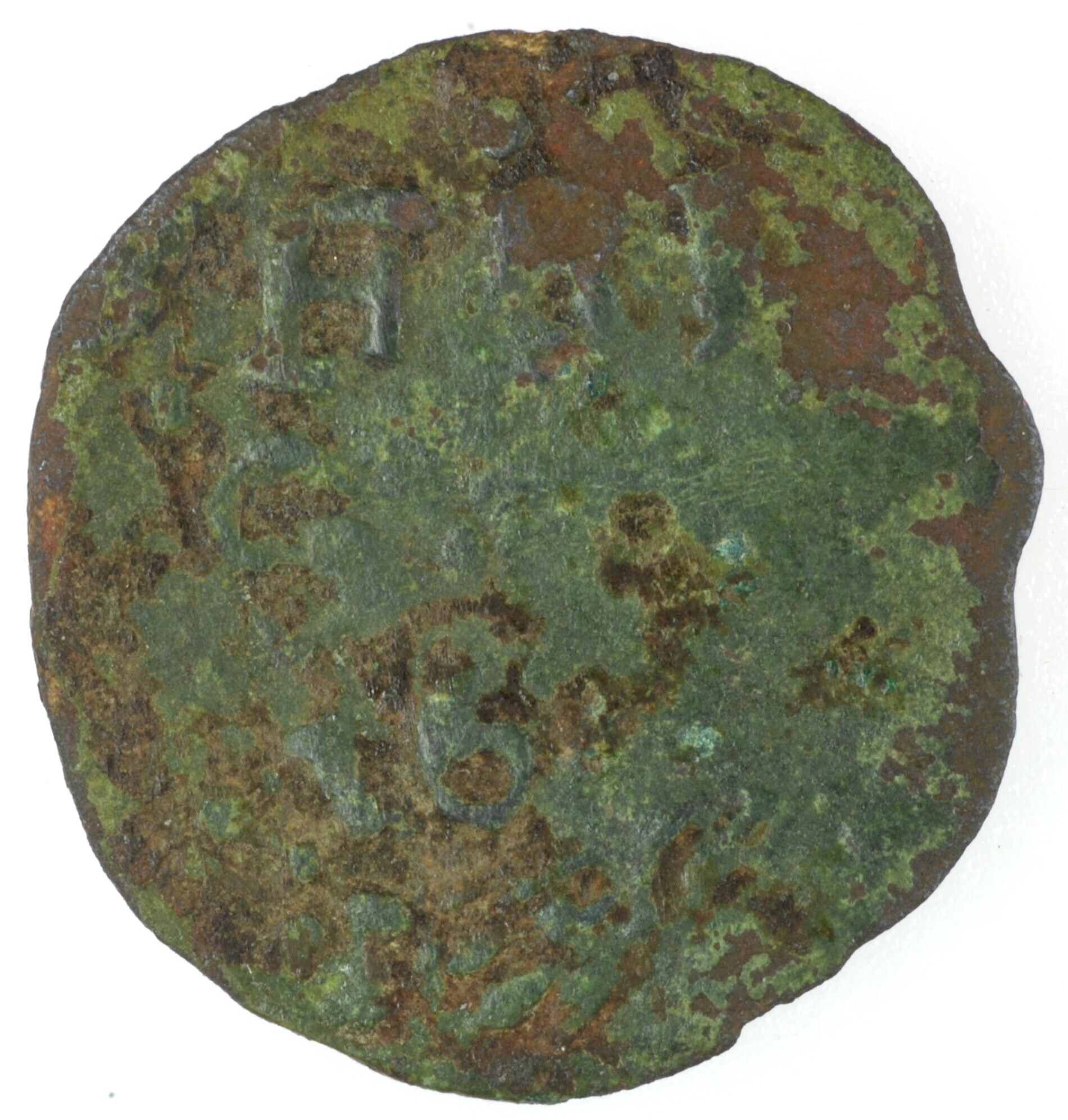 Duit; Reckheim Rijksgraafschap (1623-1795); Ferdinand van Aspermont-Lynden (1636-1665); vz.: wapenschild van Friesland, met omschrift [...]IMP[…]; kz.: binnen een parelcirkel in drie regels: FRI / C[IR] / 16[21]; muntplaats: Reckheim; gewicht: 1.14 gram; referentie: Purmer / Wiel R60.1