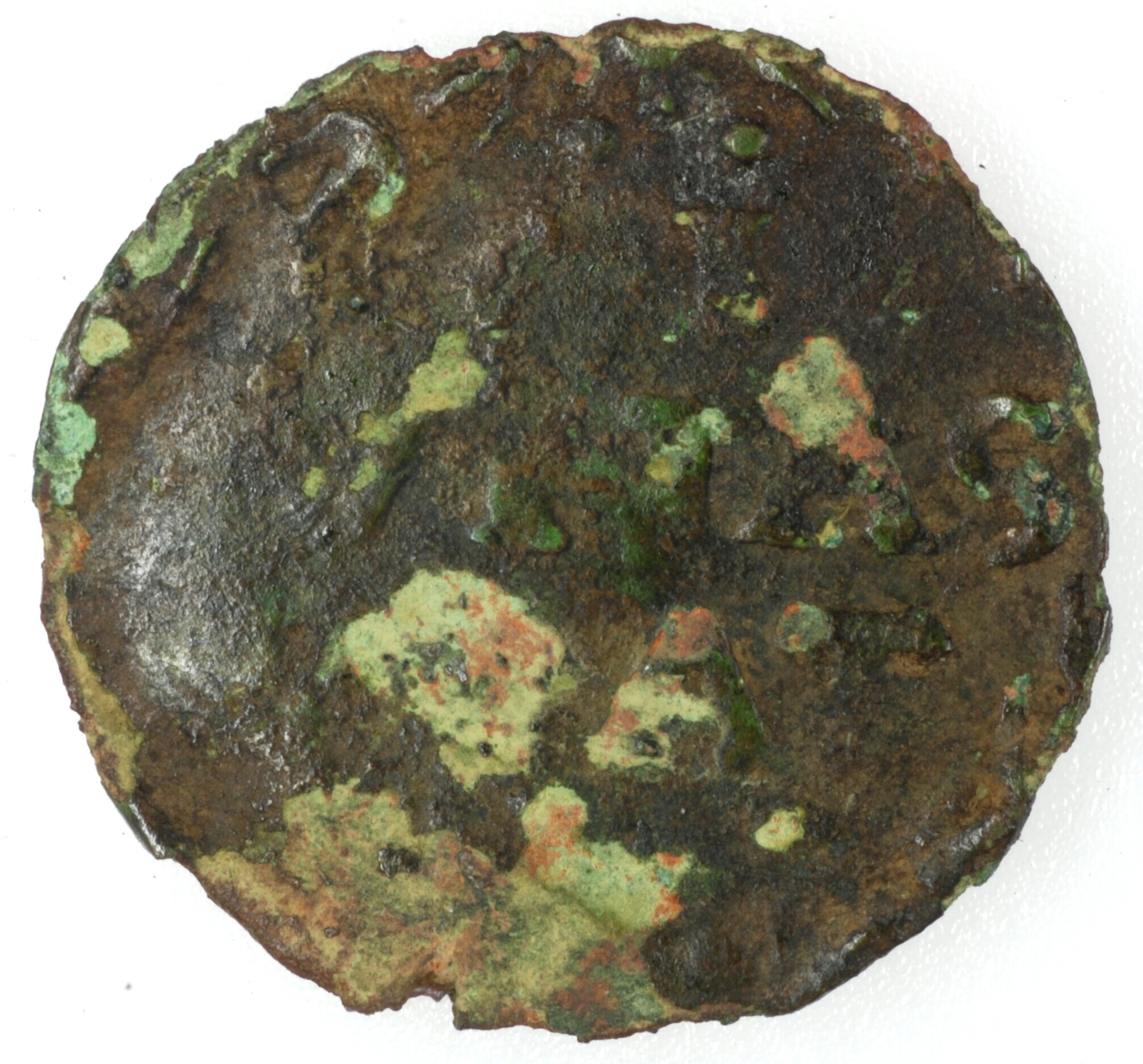 Duit; Gelderland Provincie (1581-1795); Steden, Batenburg; vz.: binnen een bladerkrans in vijf regels: . . / [C]I / VITAS / [B]AT. /[ . .]; kz.: versierd en gekroond wapenschild met ongewapende klimmende leeuw, naar links gewend, in twee halve bladerkransen; muntplaats: Batenburg: gewicht: 1.15 gram; referentie: Purmer / Wiel 1302, CNM 2.05.96