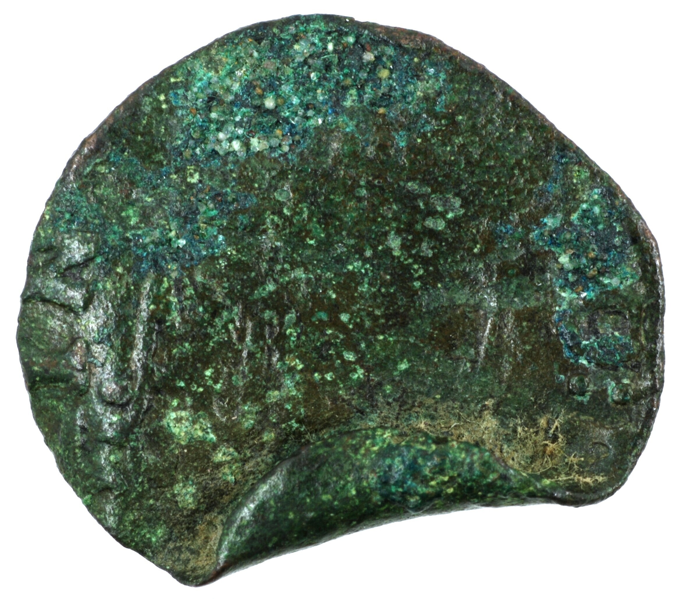 Duit; Gelderland Provincie (1581-1795); Steden, Huissen; vz.: binnen een door twee rozetten onderbroken bladerkrans, met omschrift CVS / •HV[IS] / S[IAE]; kz.: gekroond wapenschild met in drie gedeelten Gulik, Kleef en Berg, met omschrift MO:P[OSS – (I:)PR]INCI; muntplaats: Huissen; gewicht: 2.86 gram; referentie: Purmer / Wiel 1602.1, CNM 2.31.26