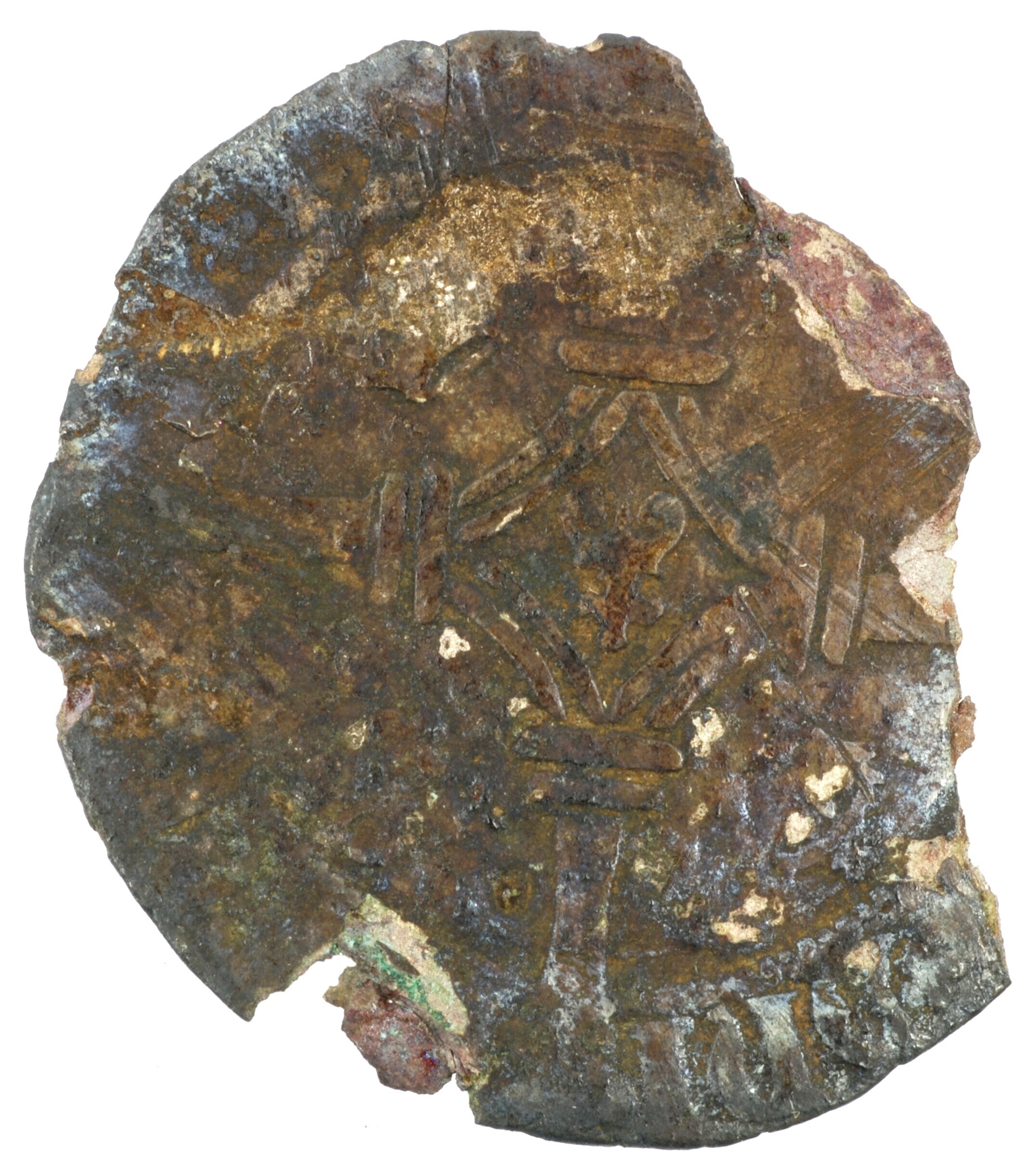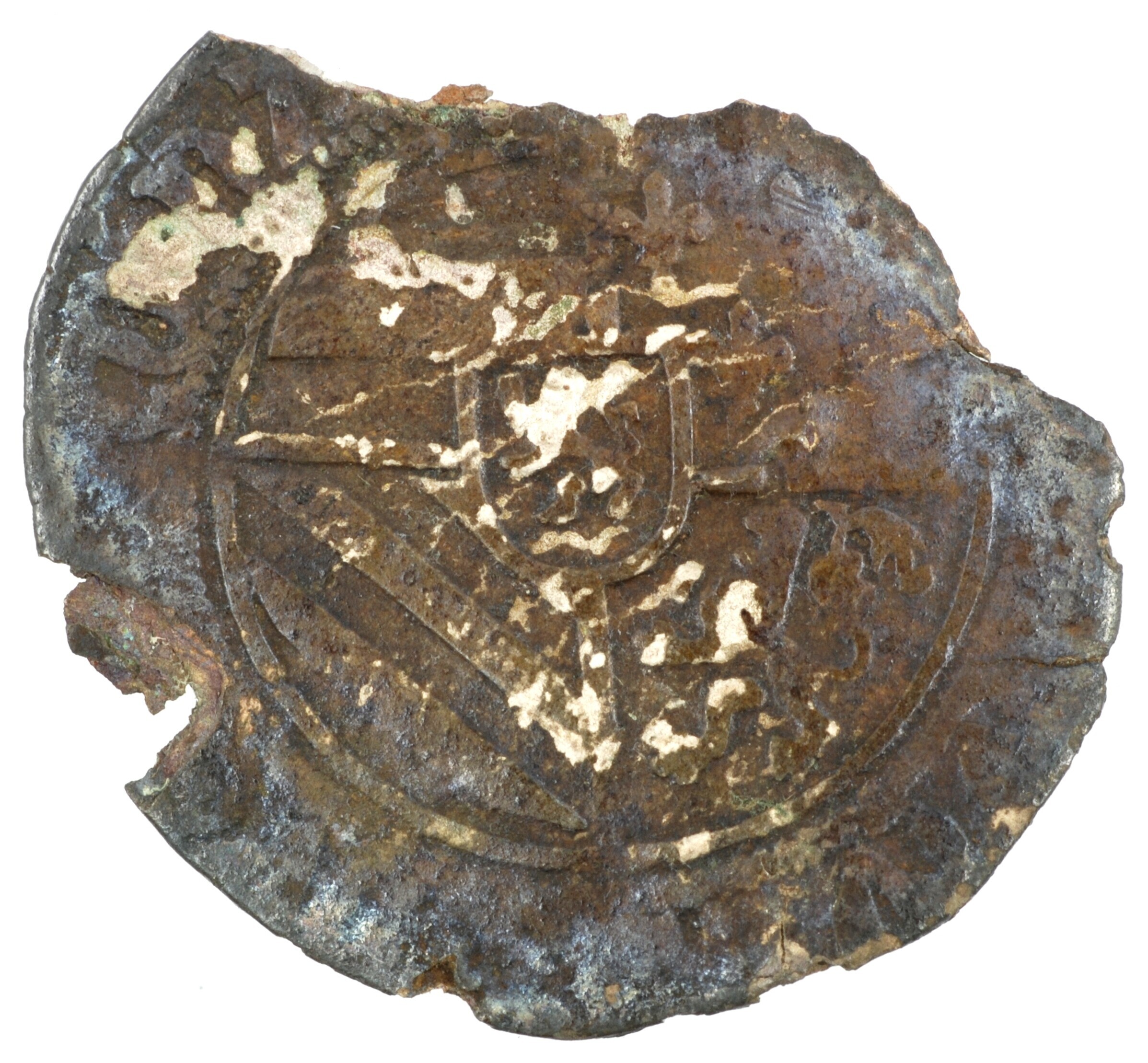 Groot; Namen Graafschap (981-1795); Karel V (1506-1555); vz.: Oostenrijks-Bourgondisch wapenschild met leeuw in het hart binnen parelcirkel, met omschrift [MO+ARCHID]VCV[+AVS+]DVC[(V)+BG+]CO+NA; kz.: lang kruis met versierd uiteinde beurtelings met vuurijzers en lelies in de kwadranten met vuurijzer in het hart, met omschrift [SIT+NO / ME+]DNI / [BENED(I) / (C)T(V)]+151[.]; muntplaats: Namen; gewicht: 1.07 gram; referentie: Gelder ...