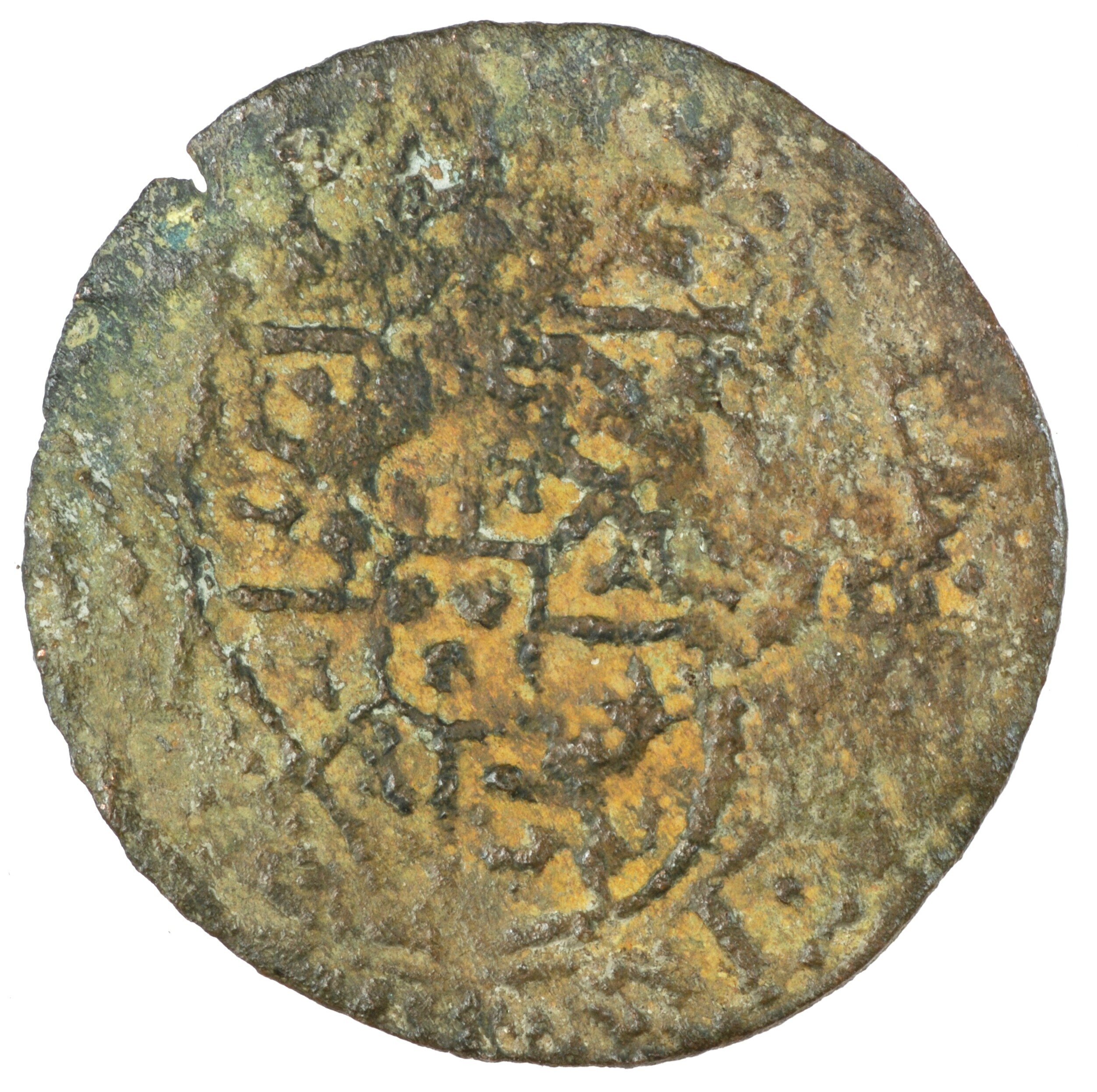Oord; Gronsveld Graafschap (1100-1795); Joost Maximiliaan (1617-1662); vz.: gekroond wapenschild met meerdere kwartieren, het hartschild is het wapen van Gronsveld, met omschrift LIB•[B]A•I[N•BAT…]; kz.: letters E B onder een bisschopshoed, met tussen de letters een kruis dat uitloopt naar een rozet, met omschrift [IVSTVS•MA•CO:DE:GRONS:B]; muntplaats: Gronsveld; gewicht: 2.06 gram; referentie: Purmer / Wiel 9120