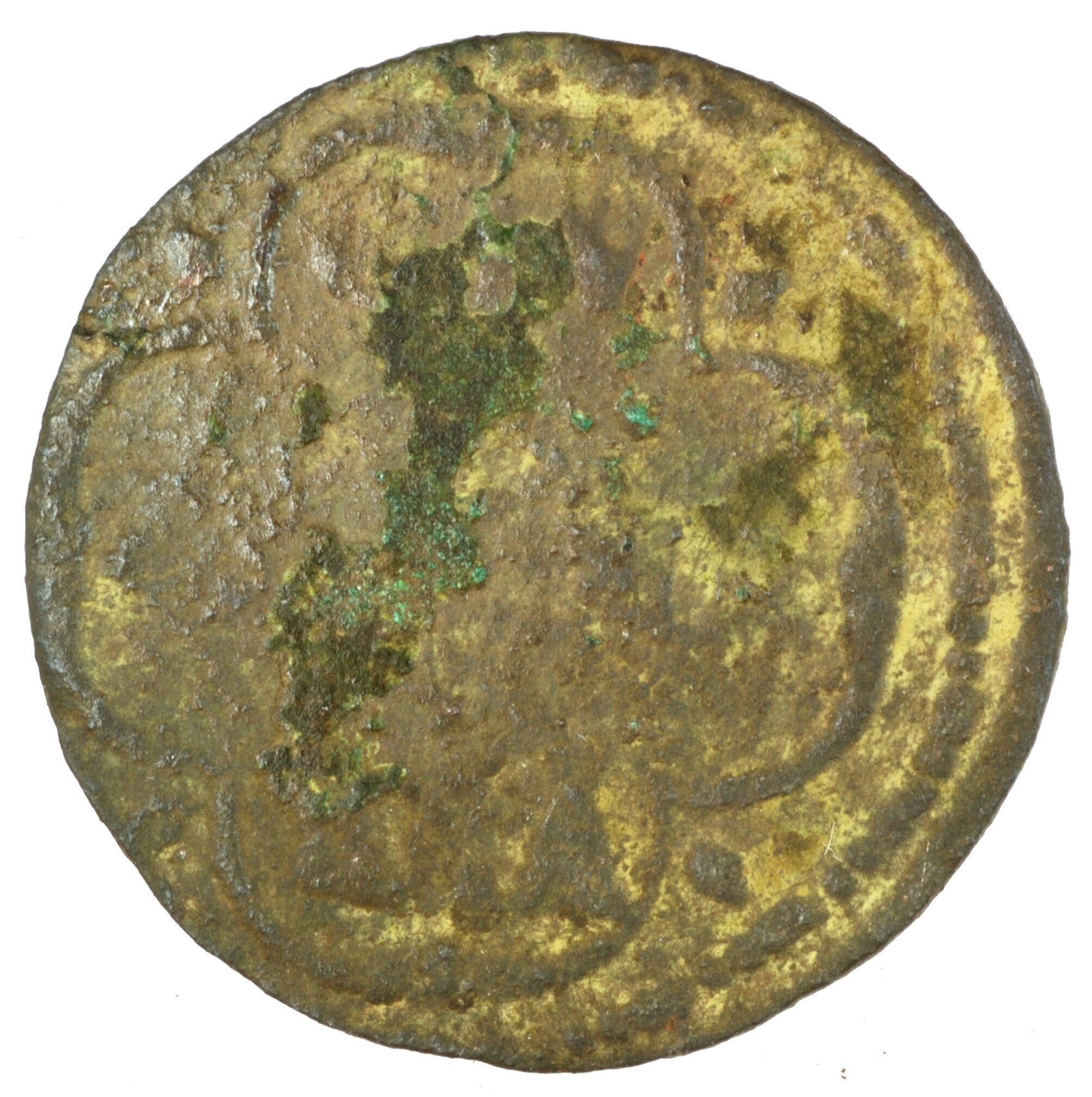 Duit; Gelderland Provincie (1581-1795); Steden, Zutphen; vz.: binnen vierpas in drie regels: CIV / [ZVTPHA] / NIA; kz.: gekroond wapenschild van Zutphen, gehouden door twee leeuwen met 8 – 7 boven de kroon; muntplaats: Zutphen; gewicht: 1.35 gram; referentie: Purmer / Wiel 1903, CNM 2.51.29
