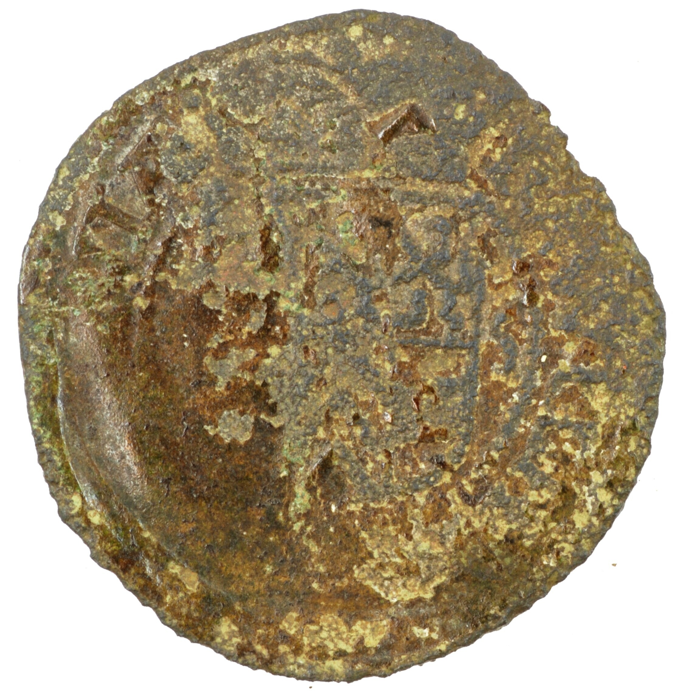 Drie heller; Duitsland; Kleef Hertogdom (1417-1795); possederende vorsten (1609-1624); vz.: gekroond wapenschild met 6 kwartieren, in de kwartieren de wapens van Kleef, Gulik, Berg, Mark, Ravensberg en Ravenstein met ter weerszijden 6 - 5, met omschrift [.IO:WILH.D.G.DVX.]CLIVIAE; kz.: III binnen een bladerkrans, met omschrift [(monogram).NVMMVS.]CLIVENS[IS]; muntplaats Emmerich; zeldzaam; gewicht: 1.25 gram; referentie: Noss 304 (omschrift ...