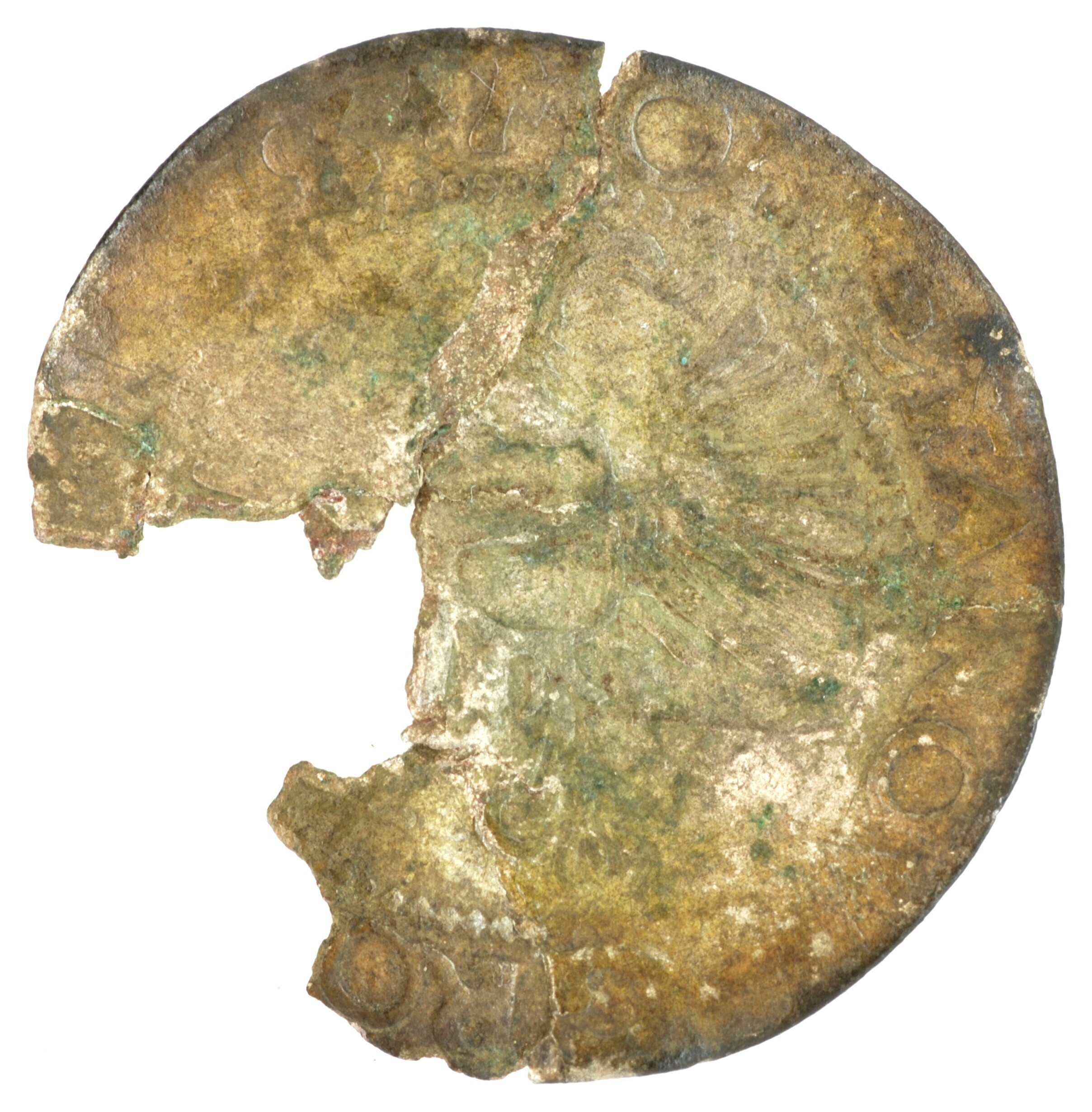 Stuiver; Groningen Provincie (1581-1795); Steden; Groningen; vz.: dubbele adelaar met dwarsbalkschild op de borst binnen parelcirkel, met omschrift (ster) MONETA•NOVA•GRO[NINGE]N[S]IS; kz.: lang gelelied kruis met dwarsbalkschild in het hart en I - S - B - R in de kwadranten, met omschrift SIT•N. / ODO / MB[E / A] 1601; muntplaats: Groningen; gewicht: 1.06 gram; ...