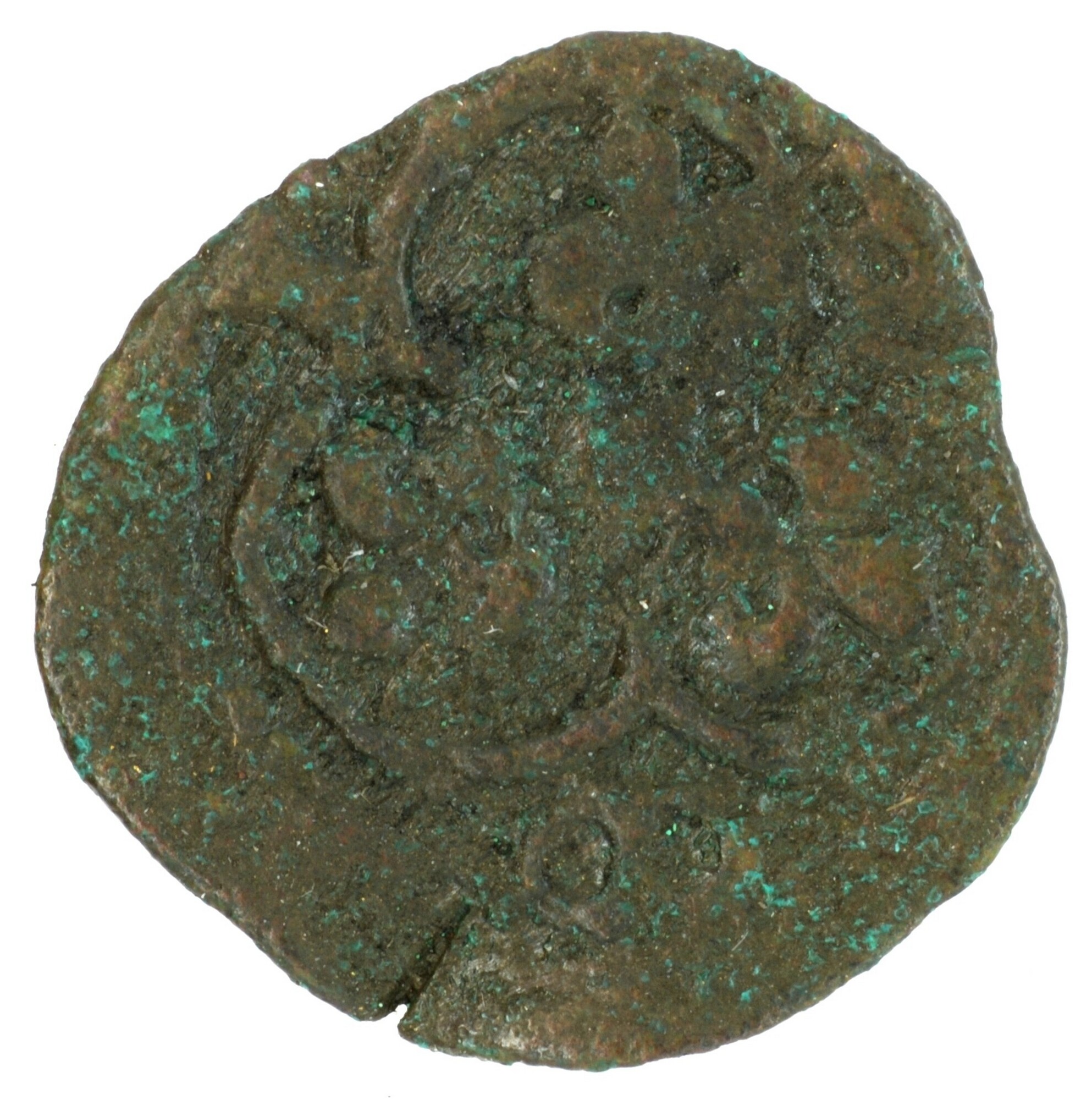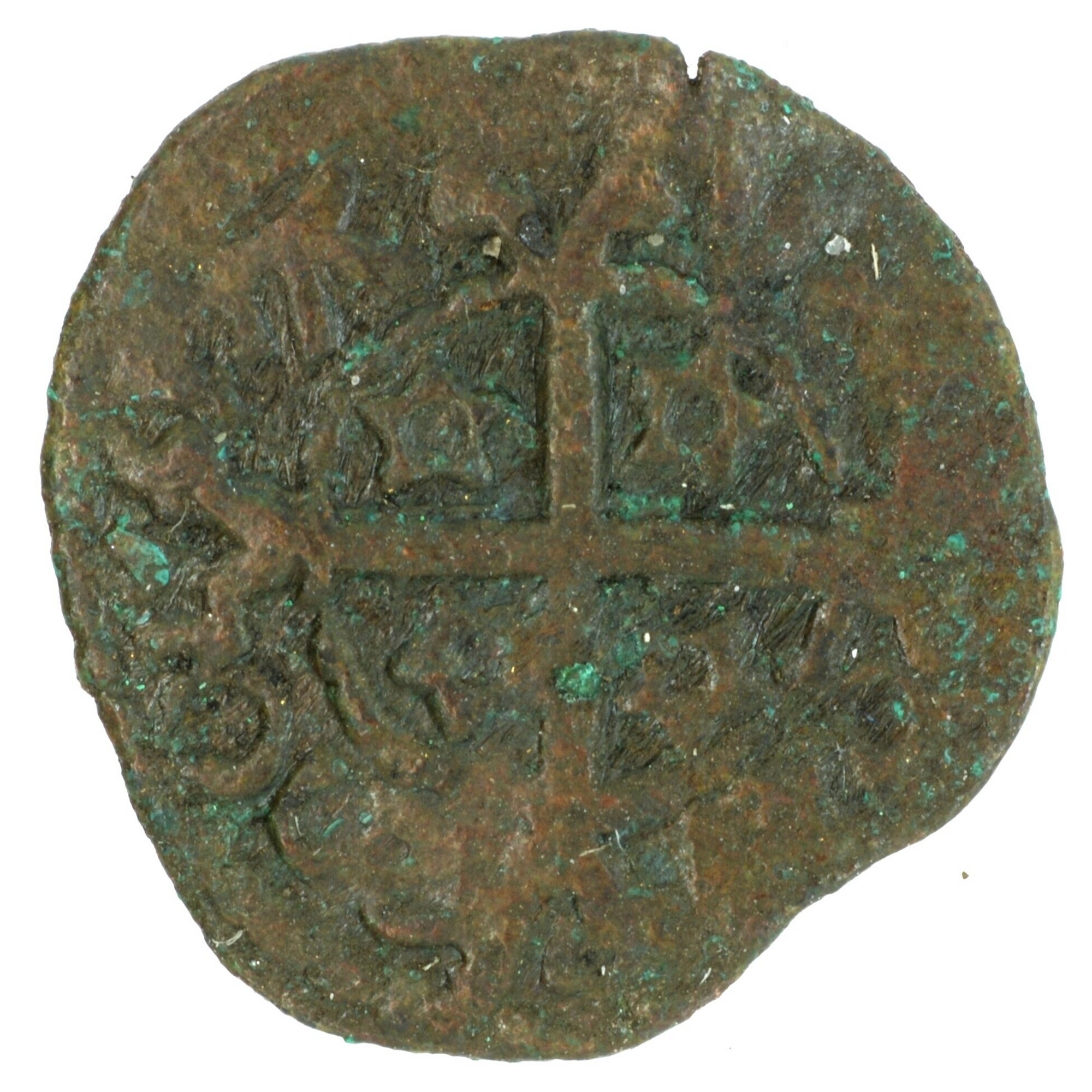 Farthing, type II; Schotland; James III (1460-1488); vz.: drie lelies binnen driepas en parelcirkel; kz.: lang kruis met gebloemd uiteinde met ruitersporen in de kwadranten binnen parelcirkel, met omschrift MO / PA / V[P / ER]; muntplaats: Edinburgh; gewicht: 0.46 gram; referentie: Seaby / Purvey 5314