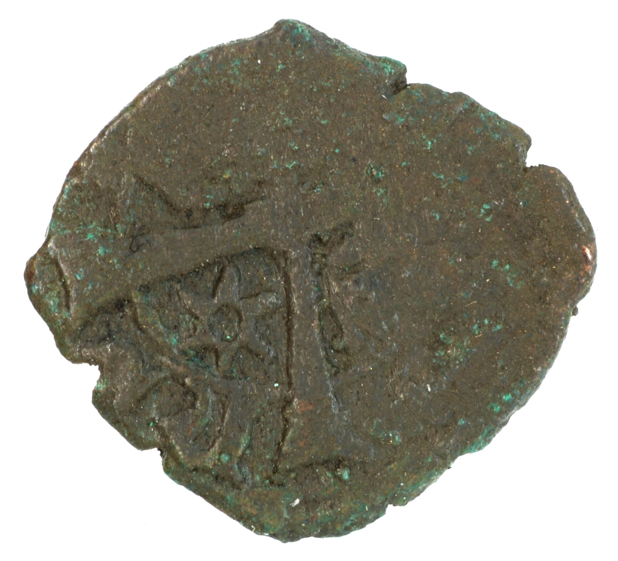 Farthing; type I; Schotland; James III (1460-1488); vz.: kroon boven IR binnen parelcirkel, met omschrift [IACOBVS+D+]G+[R]; kz.: lang kruis met gebloemd uiteinde met beurtelings kroon en ruiterspoor in de kwadranten binnen parelcirkel, met omschrift [M]O / NE / [PA / VP]; muntplaats: Edinburgh; gewicht: 0.63 gram; uiterst zeldzaam; referentie: Seaby / Purvey 5312
