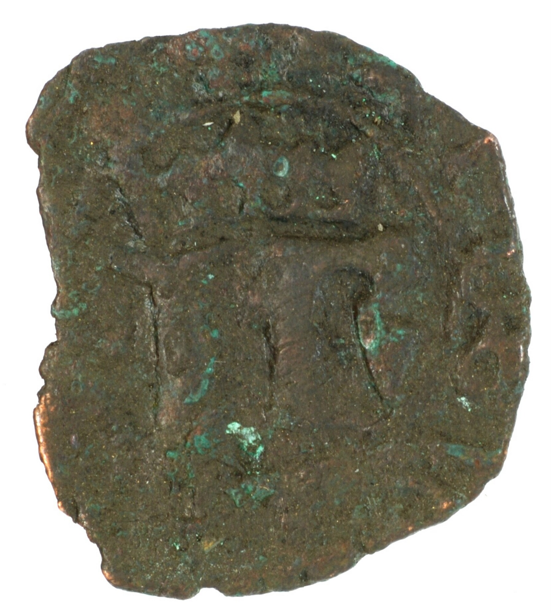 Farthing; type I; Schotland; James III (1460-1488); vz.: kroon boven IR binnen parelcirkel, met omschrift +[I]A[C]OBV[S+D+G+R]; kz.: lang kruis met gebloemd uiteinde met beurtelings kroon en ruiterspoor in de kwadranten binnen parelcirkel, met omschrift [M]O / N[E / PA / VP]; muntplaats: Edinburgh; gewicht: 0.32 gram; uiterst zeldzaam; referentie: Seaby / Purvey 5312