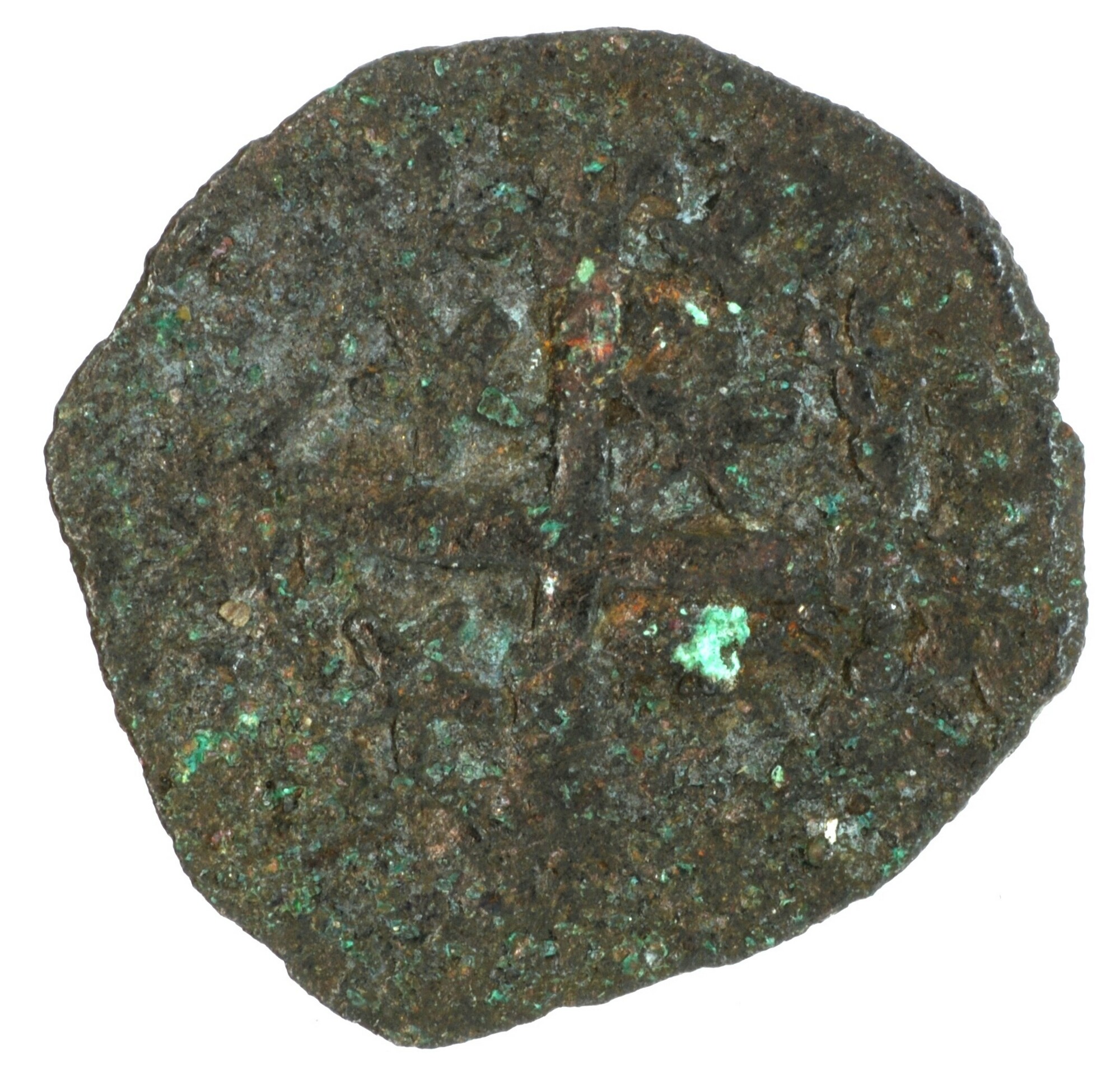 Farthing; type II; Schotland; James III (1460-1488); vz.: drie lelies binnen driepas en parelcirkel; kz.: lang kruis met gebloemd uiteinde met ruitersporen in de kwadranten binnen parelcirkel, met omschrift MO / NE / P[A / VP]; muntplaats: Edinburgh; gewicht: 0.45 gram; uiterst zeldzaam; referentie: Seaby / Purvey 5313