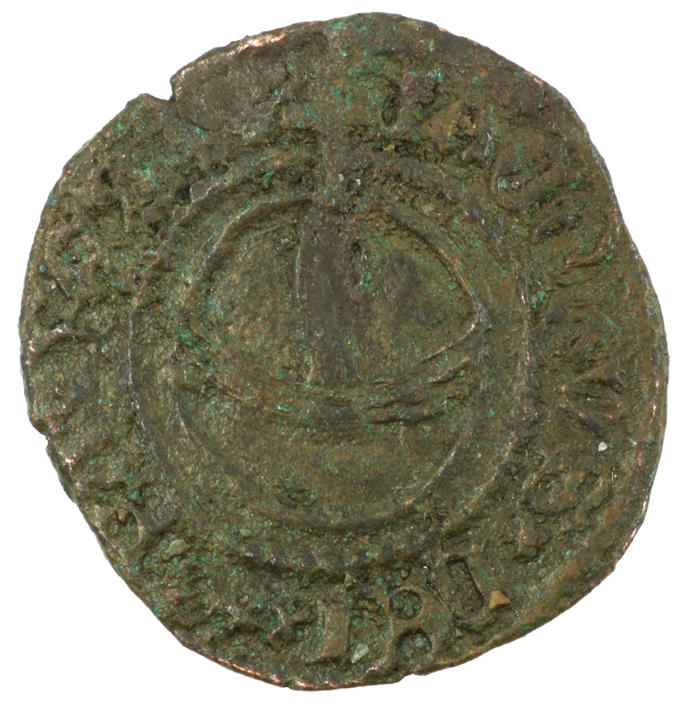 Penny; type IIa; Schotland; James III (1460-1488); vz.: rijksappel naar boven gedraaid binnen parelcirkel, met omschrift +IACOBVS×DEI×GRA×REX×; kz.: Latijns kruis binnen vierpas en parelcirkel, met omschrift +CRVX×PELLIT×OIE×CRIM; muntplaats: Edinburgh; gewicht: 1.55 gram; zeldzaam; referentie: Seaby / Purvey 5309