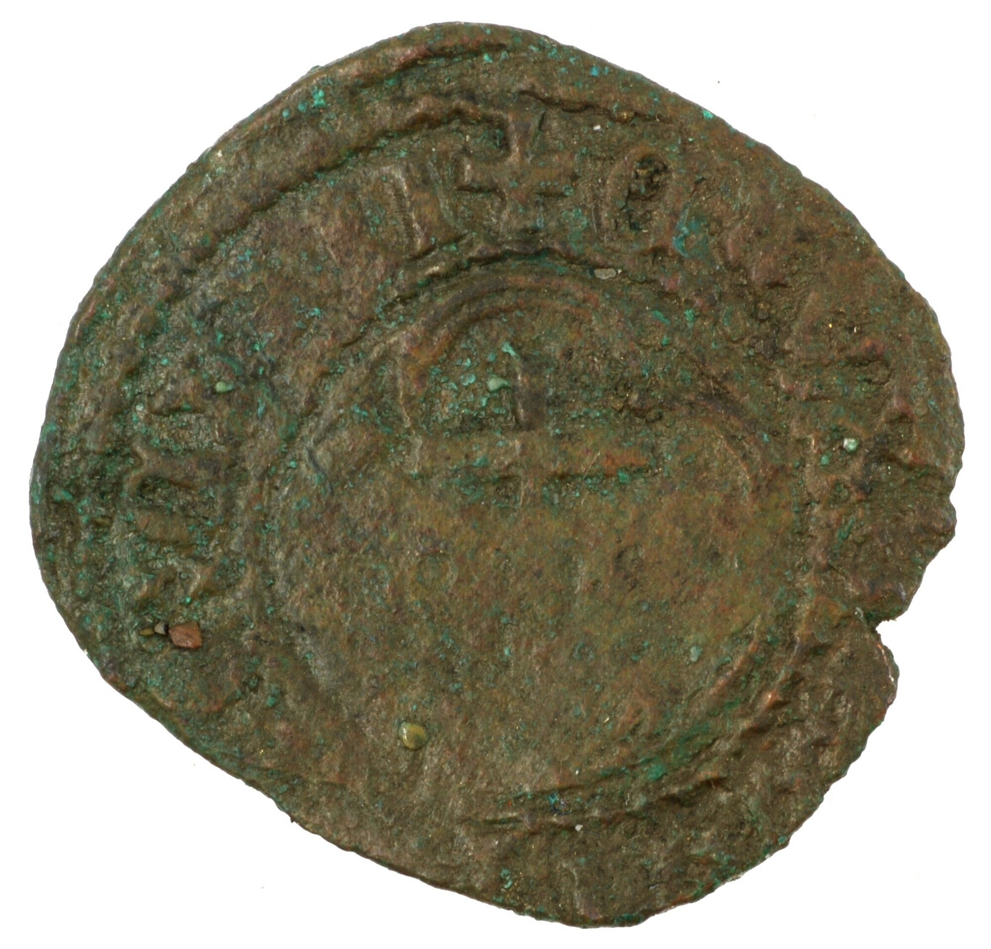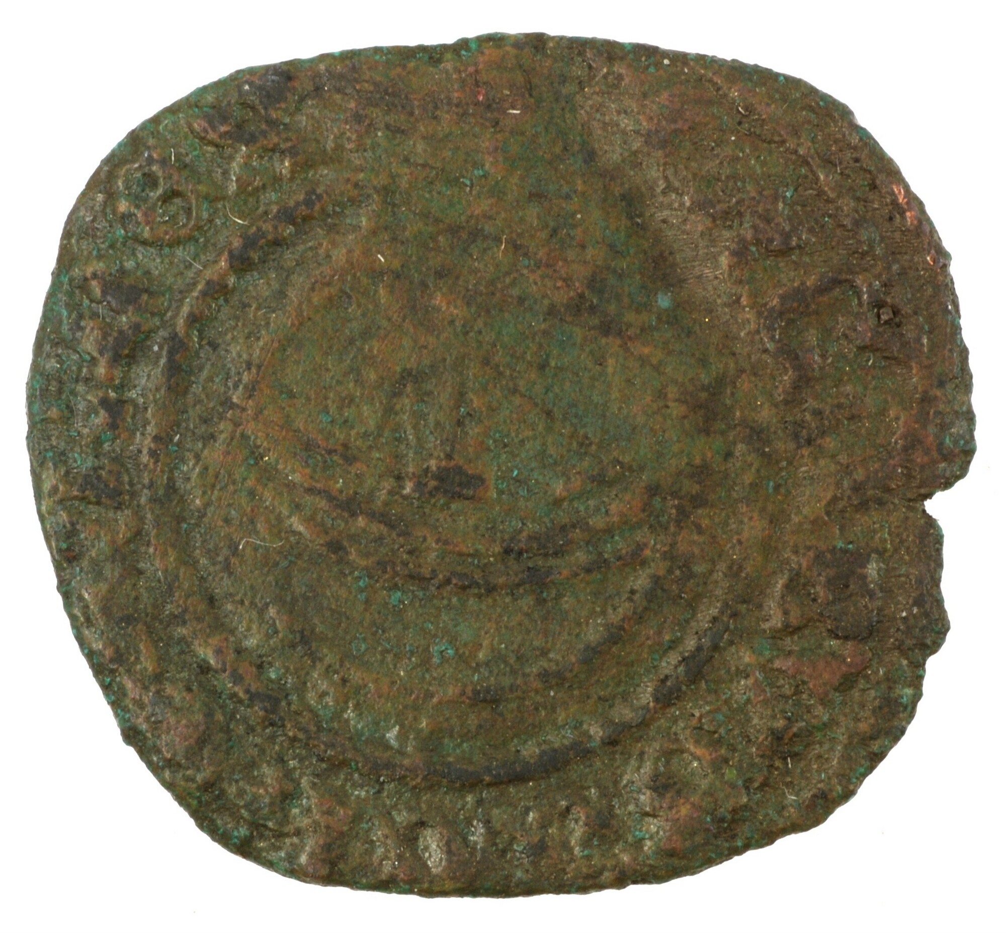 Penny; type IIa; Schotland; James III (1460-1488); vz.: rijksappel naar boven gedraaid binnen parelcirkel, met omschrift [+IA]C[BVS×DEI×[GR]A×REX; kz.: Latijns kruis binnen vierpas en parelcirkel, met omschrift +CRVX×[PELLIT×OI]E×CRIII; muntplaats: Edinburgh; gewicht: 1.64 gram; zeldzaam; referentie: Seaby / Purvey 5309 var (interpunctie voor- en keerzijde twee kruizen boven elkaar en CRIII in plaats van CRIM)