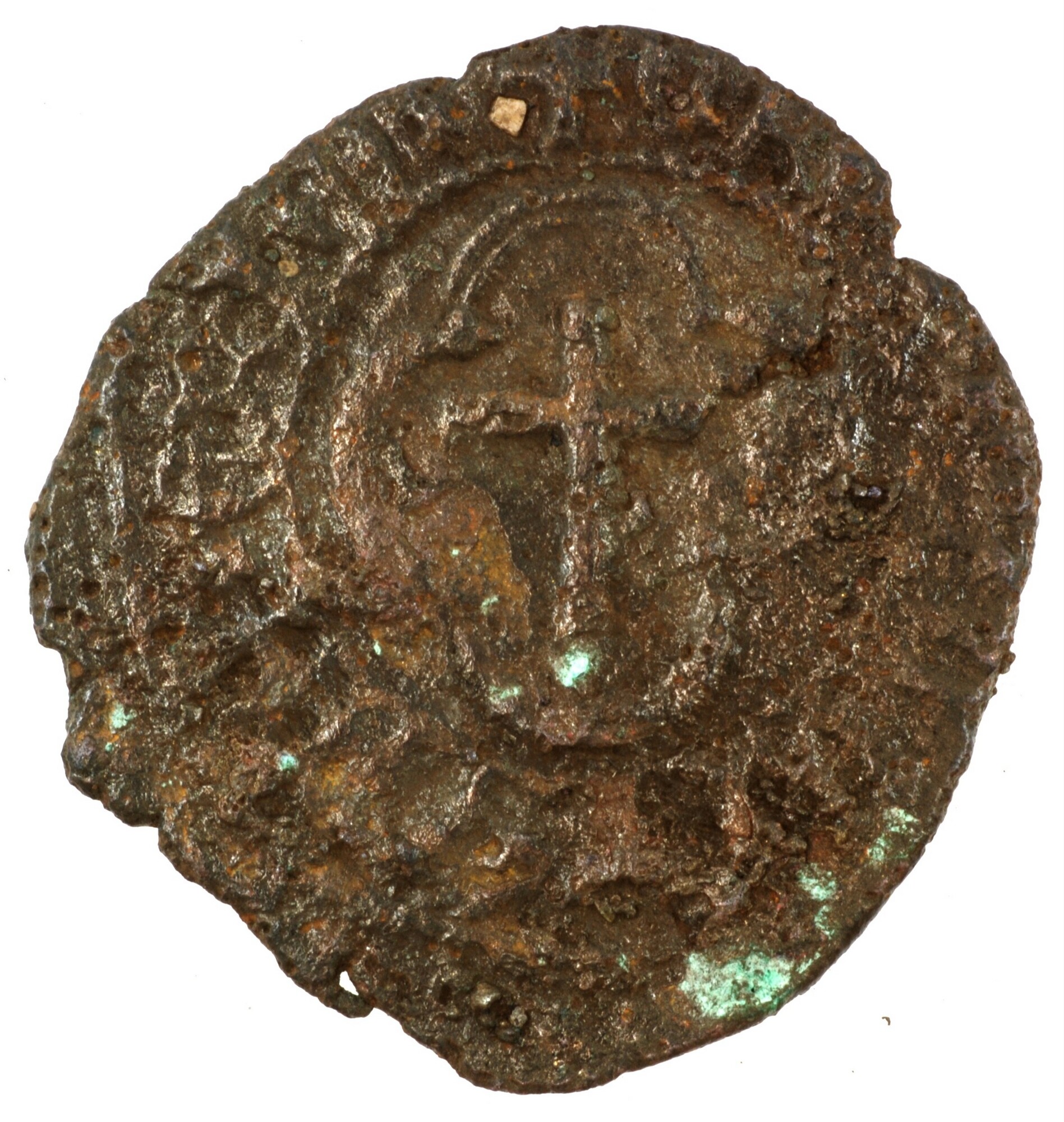 Penny; type IIa; Schotland; James III (1460-1488); vz.: rijksappel naar boven gedraaid binnen parelcirkel, met omschrift +IA[C[OBVS[×DEI×GR]A[×REX]; kz.: Latijns kruis binnen vierpas en parelcirkel, met omschrift +CRV[X×PELLIT]×OIE×CRIM×; muntplaats: Edinburgh; gewicht: 2.03 gram; zeldzaam; referentie: Seaby / Purvey 5309