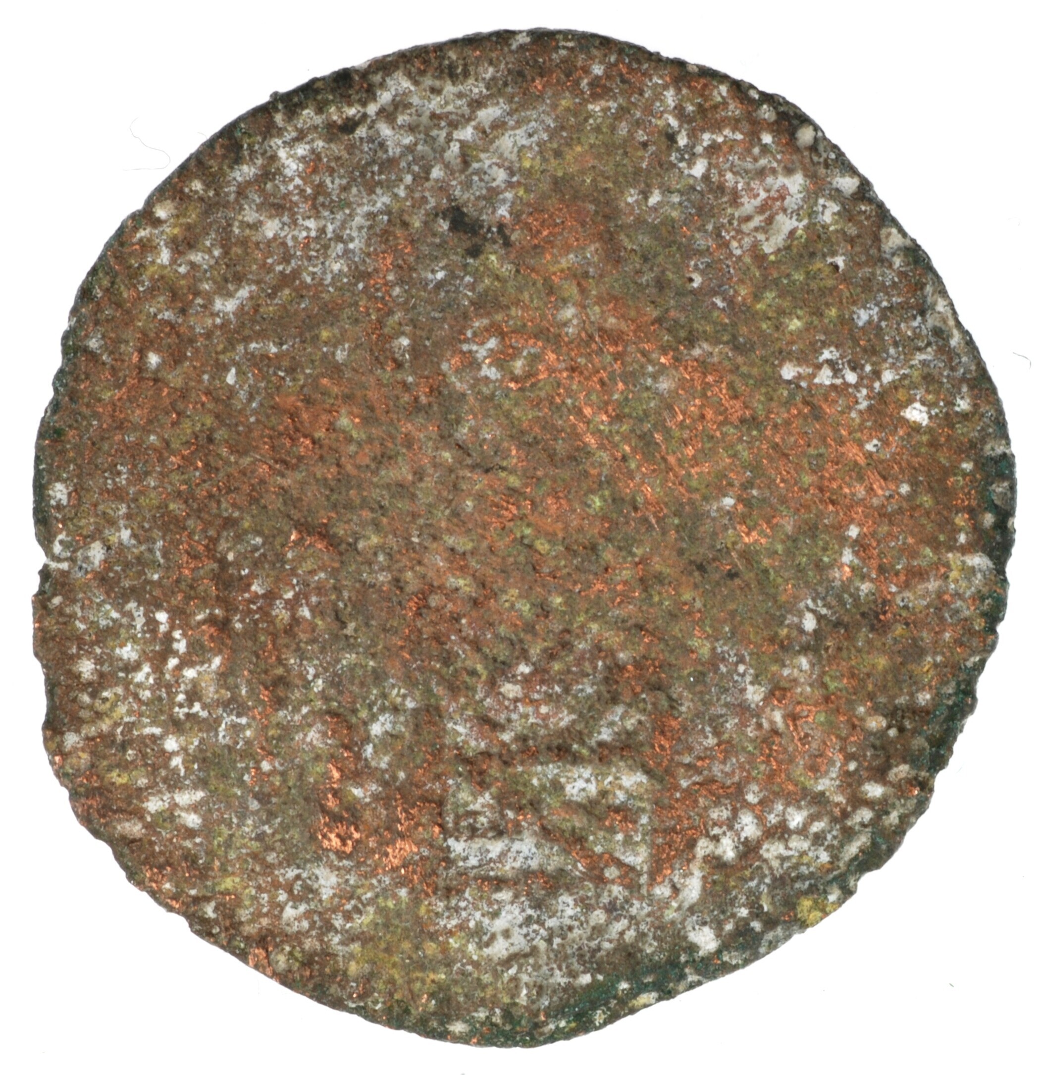 Duit; Holland Provincie (1581-1795); vz.: binnen een bladerkans in drie regels: HOL / [L]ANDI[A] / 1626; kz.: maagd gezeten binnen een niet gesloten omheining, met de rechterarm omhoog, wijzend naar de zon, met omschrift [•AVX•NOS•IN•NOM•DOM•(rozet)]; muntplaats: Dordrecht; gewicht: 1.89 gram; referentie: Purmer / Wiel 2005, CNM 2.28.125