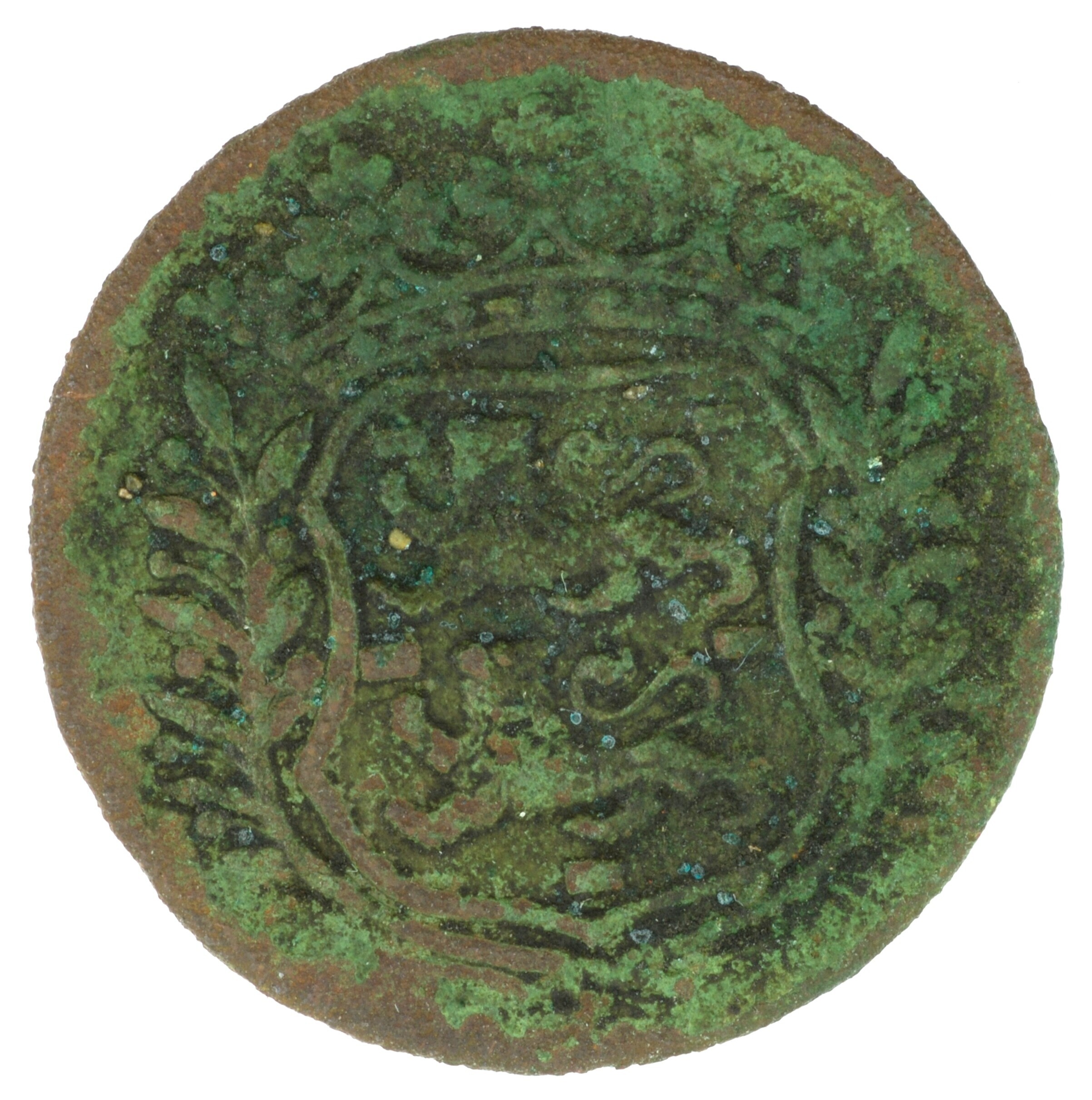 Duit; West-Friesland Provincie (1581-1795); vz.: in vijf regels: ster (rozet) ster / WEST / FRISIAE / 1702 / rozet; kz.: gekroond wapenschild van West-Friesland met lauwertakken; muntplaats: Enkhuizen; gewicht: 2.56 gram; referentie: Purmer / Wiel 3007, CNM 2.46.95