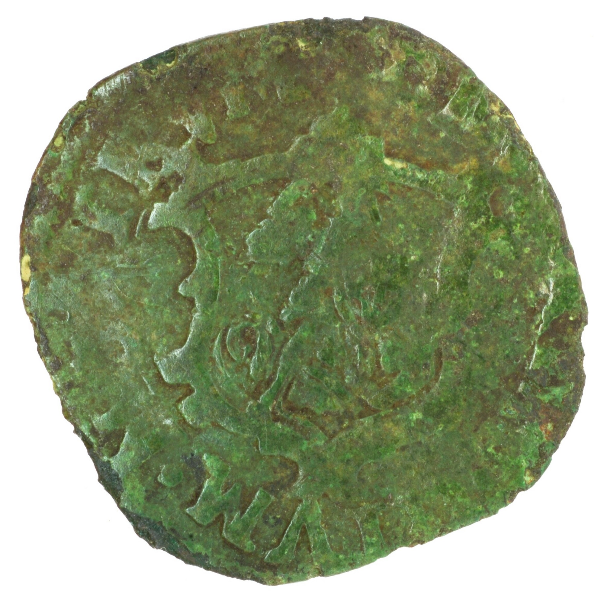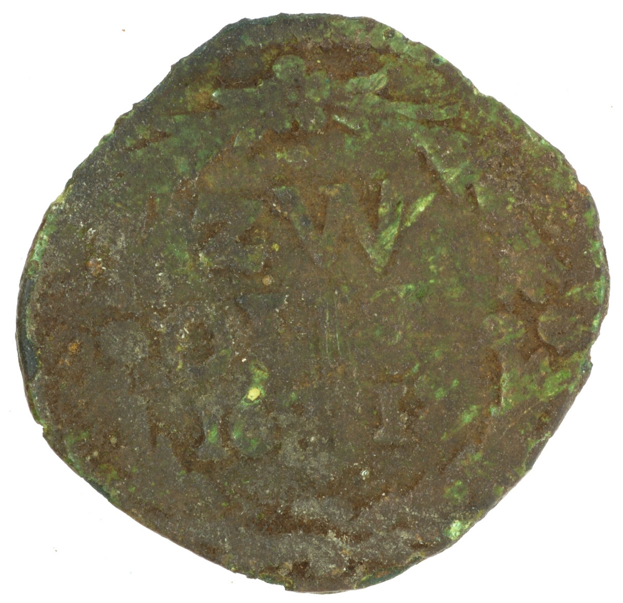 Duit; Overijssel Provincie (1581-1795); Steden: Zwolle; kz.: binnen een bladerkrans in drie regels: ZW / OLLAE / 16 (stadswapen) 18; kz.: wapenschild van Zwolle (st. Michiel met als schild het Zwolse kruis), met omschrift DEV[S•REF]VGIVM•NO[S]TR[V]M [(bloem)]; muntplaats Zwolle; gewicht: 1.86 gram; schaars; referentie: Purmer / Wiel 7302, CNM 2.52.117