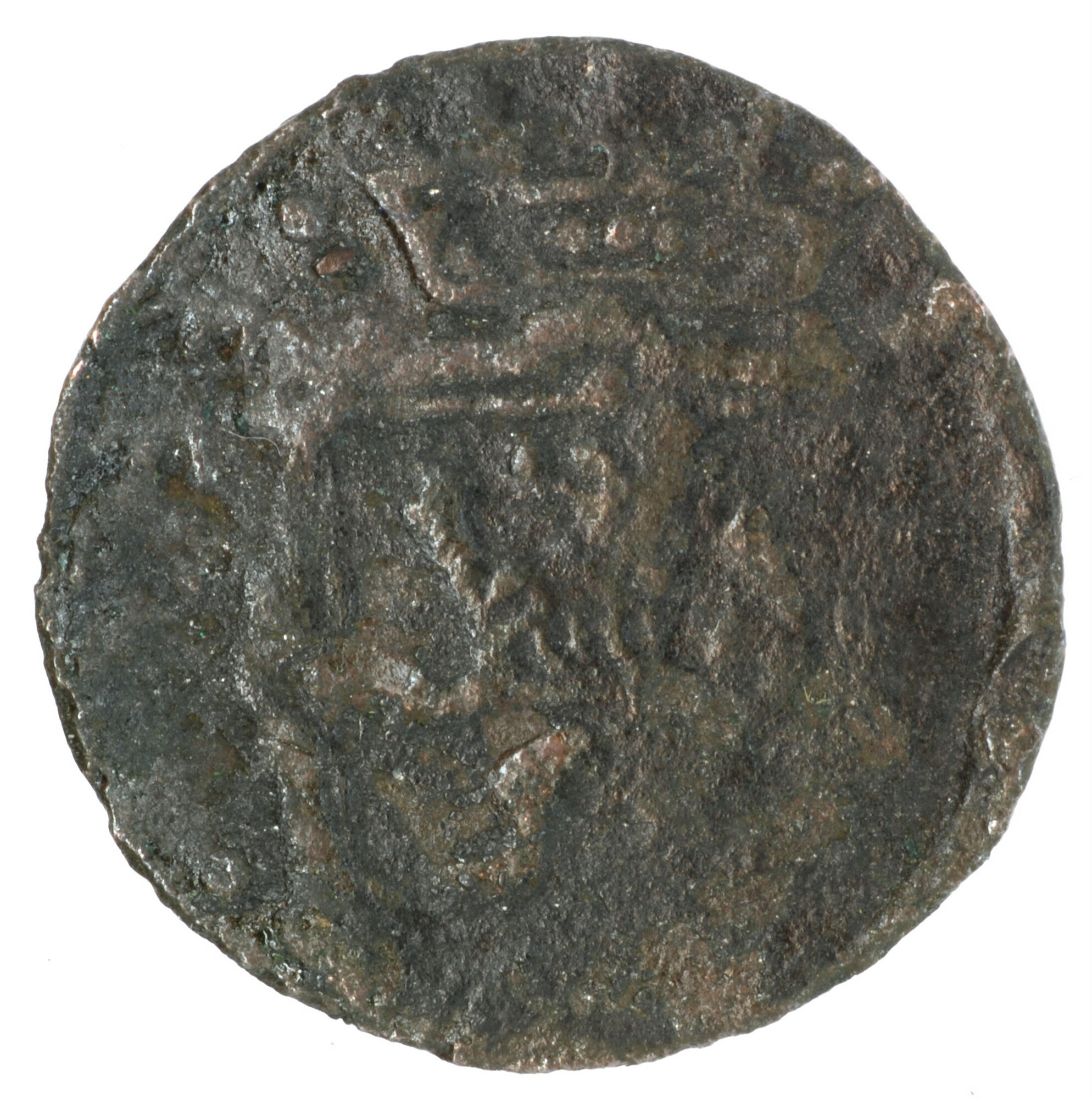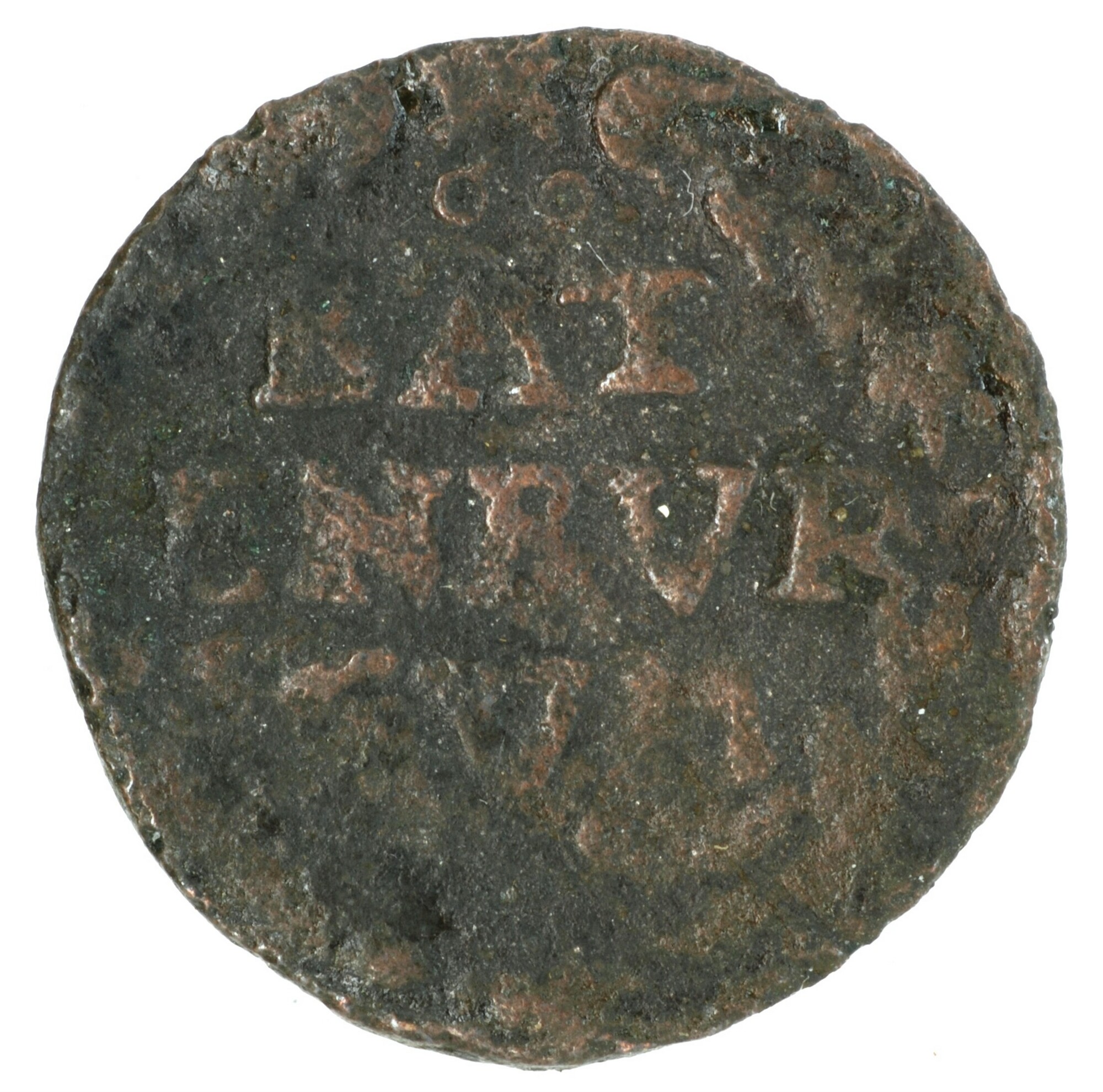 Duit; Gelderland Provincie (1581-1795); Steden, Batenburg; vz.: binnen een bladerkrans in vijf regels: • • [•] / BAT / ENBVR / GVM. / [• • •]; kz.: versierd en gekroond wapenschild met ongewapende klimmende leeuw, naar links gewend, in twee halve bladerkransen; muntplaats: Batenburg; gewicht: 1.40 gram; referentie: Purmer / Wiel 1301, CNM 2.05.95