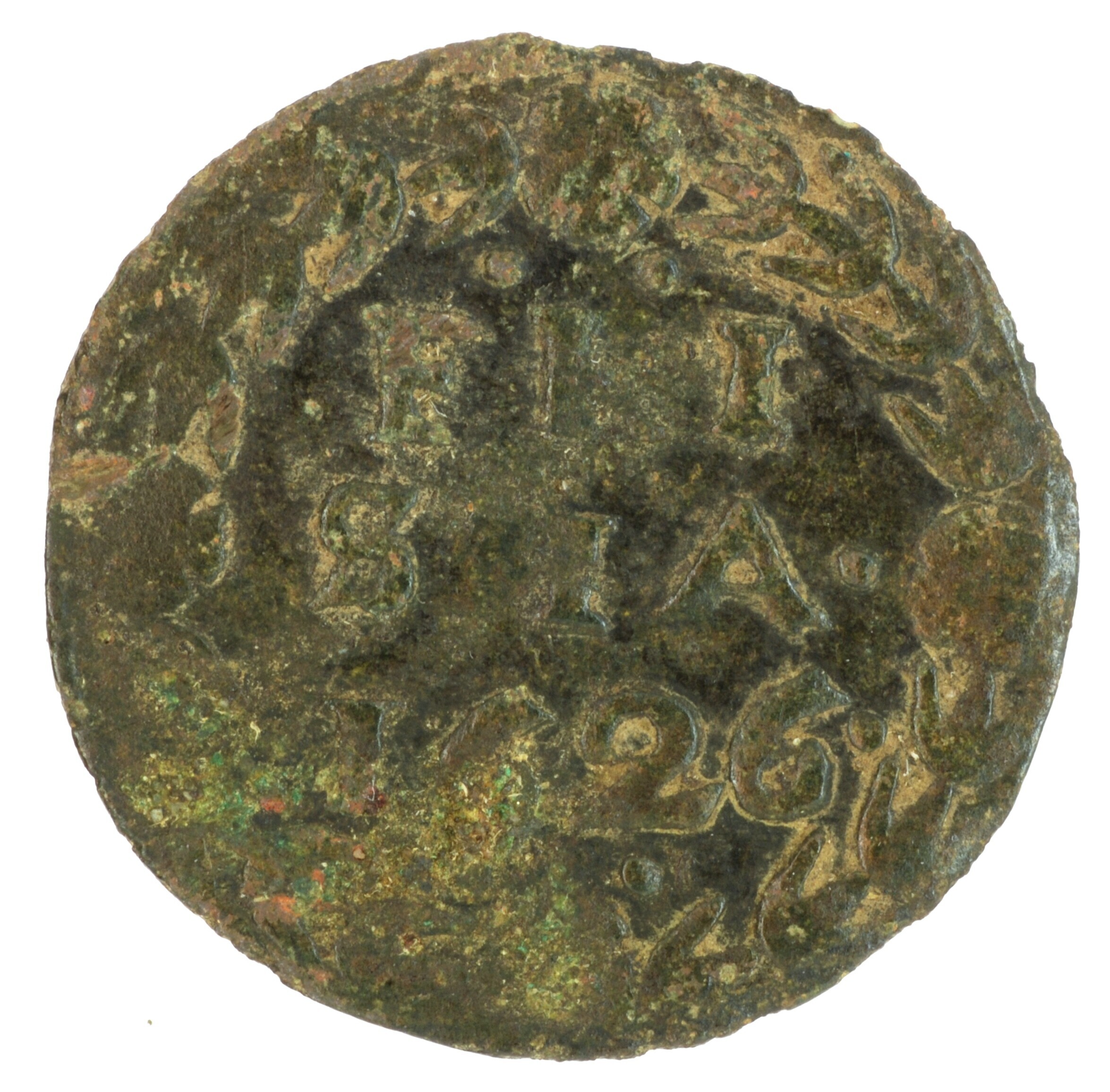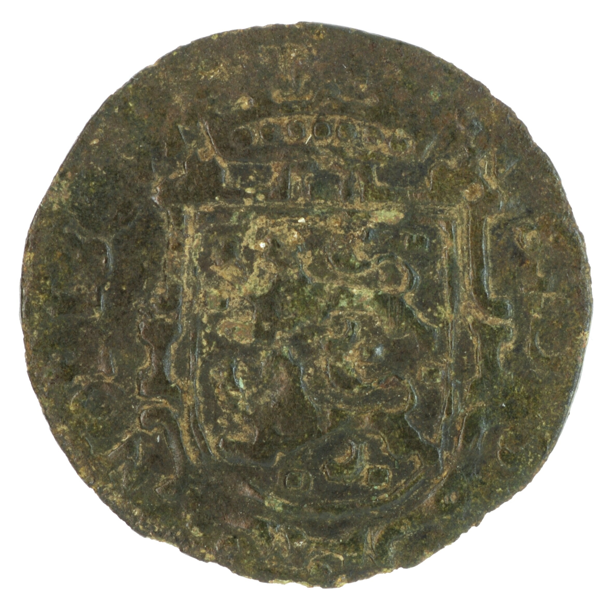 Duit; Friesland Provincie (1581-1795); vz.: binnen een bladerkrans in vijf regels • • / FRI / SIA• / 1626• / [•] •; kz.: met open kroon gekroond en versierd wapenschild van Friesland, met omschrift NISI•D[NS]• – •NOBISCVM; muntplaats: Leeuwarden; gewicht: 1.45 gram; referentie: Purmer / Wiel 6006 var (twee punten boven en onder de tekst ...