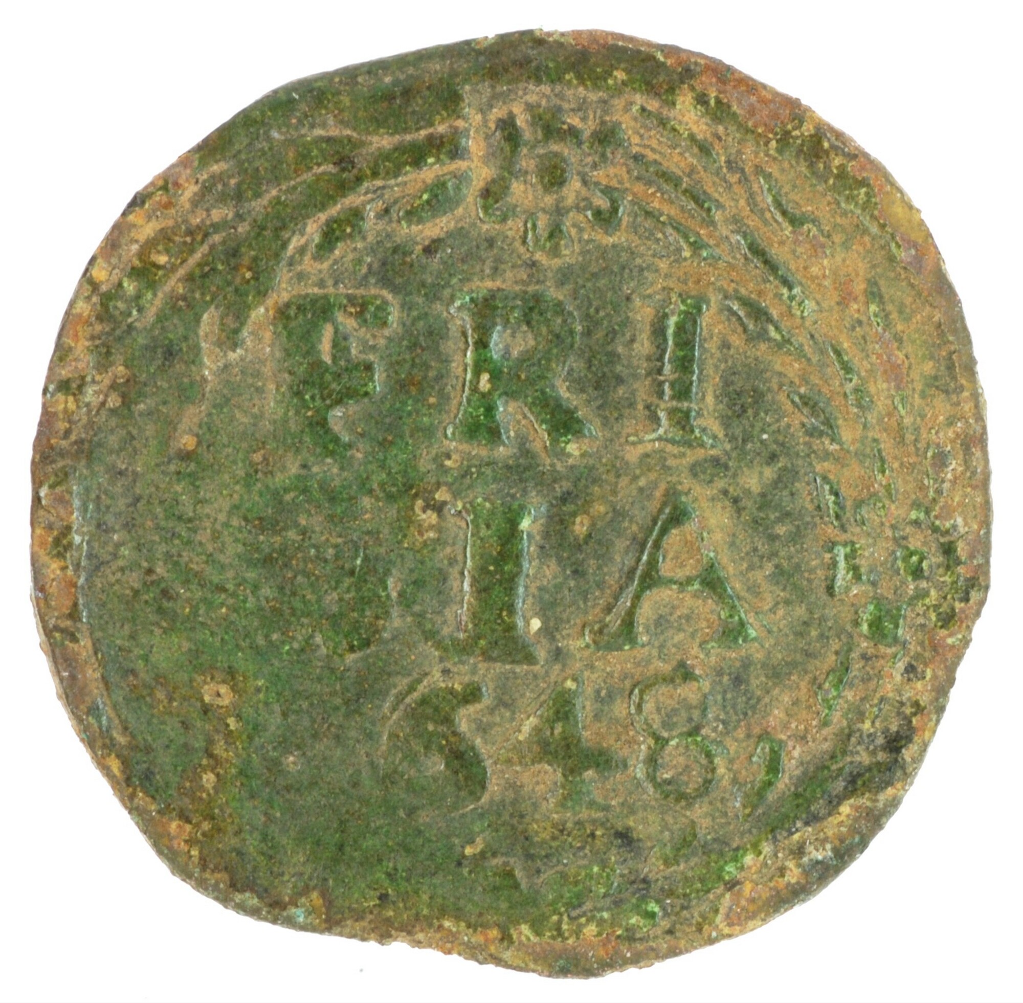 Duit; Friesland Provincie (1581-1795); vz.: binnen een bladerkrans in drie regels FRI / SIA / 1648; kz.: met open kroon gekroond en versierd wapenschild van Friesland, met omschrift NISI•DNS[•] – •NOBI[SC]VM; muntplaats: Leeuwarden; gewicht: 1.86 gram; referentie: Purmer / Wiel 6006, CNM 2.16.142