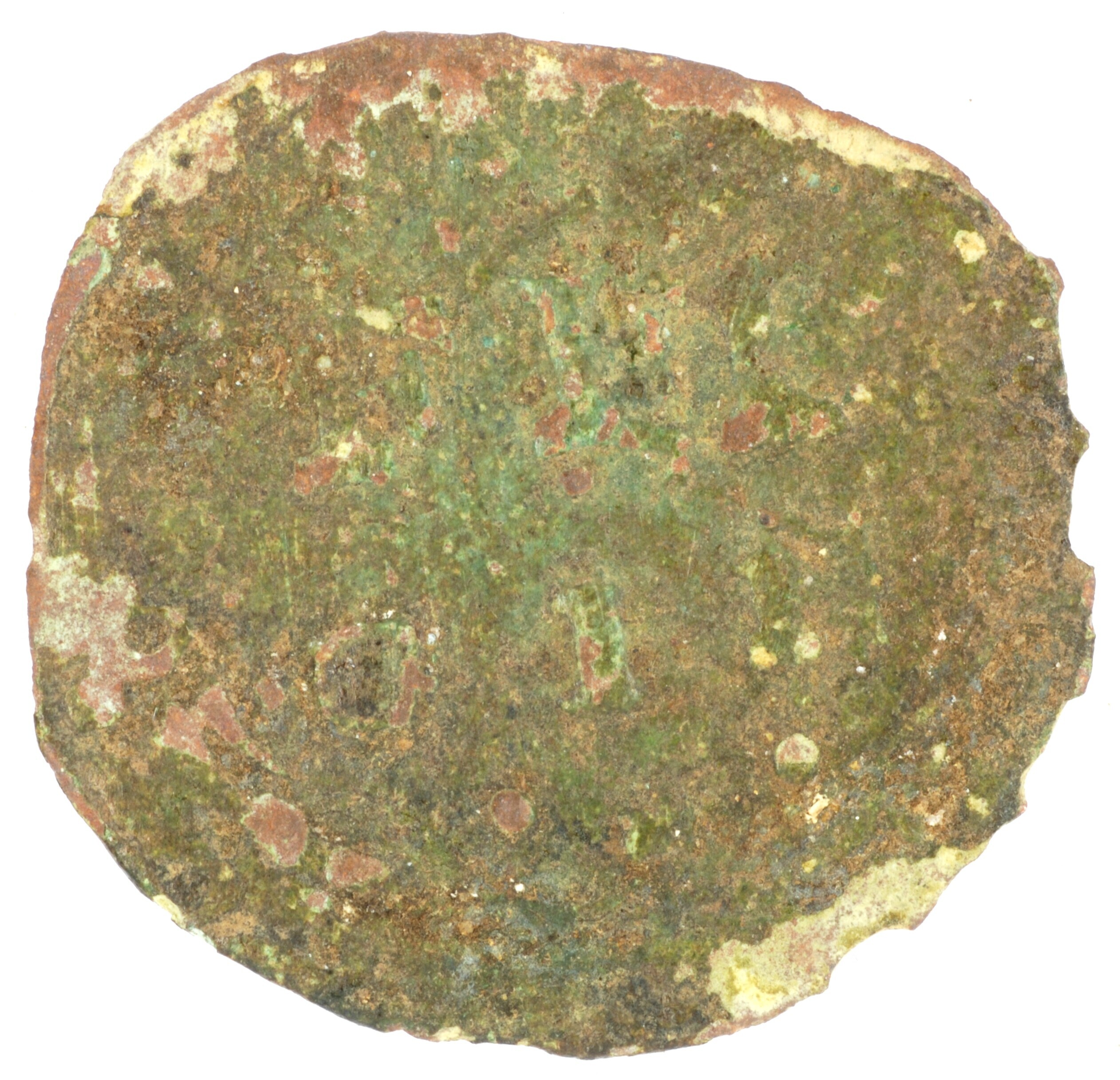 Duit; Reckheim Rijksgraafschap (1623-1795); Ferdinand van Aspermont Lynden (1636-1665); vz. binnen een bladerkrans in drie regels: • • / FER / DIN / • •; kz.: gekroond wapenschild van Friesland, met omschrift [COM IMPER]•IN•REC; muntplaats: Reckheim; gewicht: 1.05 gram; referentie: Purmer / Wiel 60.2 var