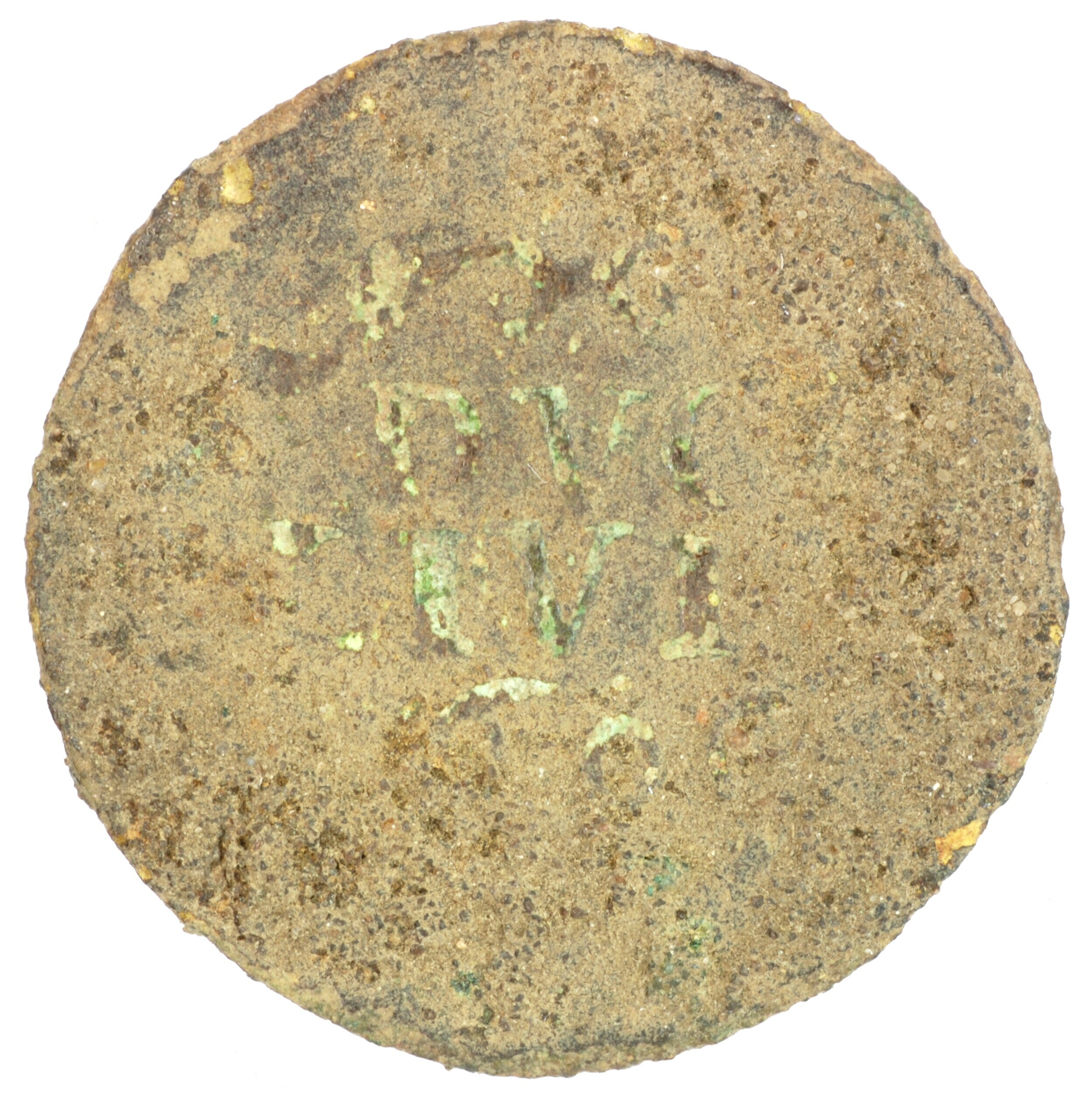 Duit; Duitsland; Kleef Hertogdom (1417-1795); Frederik III van Brandenburg (1688-1701); vz.: gekroond wapen van Kleef, vastgehouden door 2 leeuwen met onder het wapen een versiering; kz.: met aan boven- en onderzijde versiering, in drie regels: DVC / [C]LIVIAE / [1]696; muntplaats: Emmerich; gewicht: 1.49 gram; referentie: Krause / Mishler 37