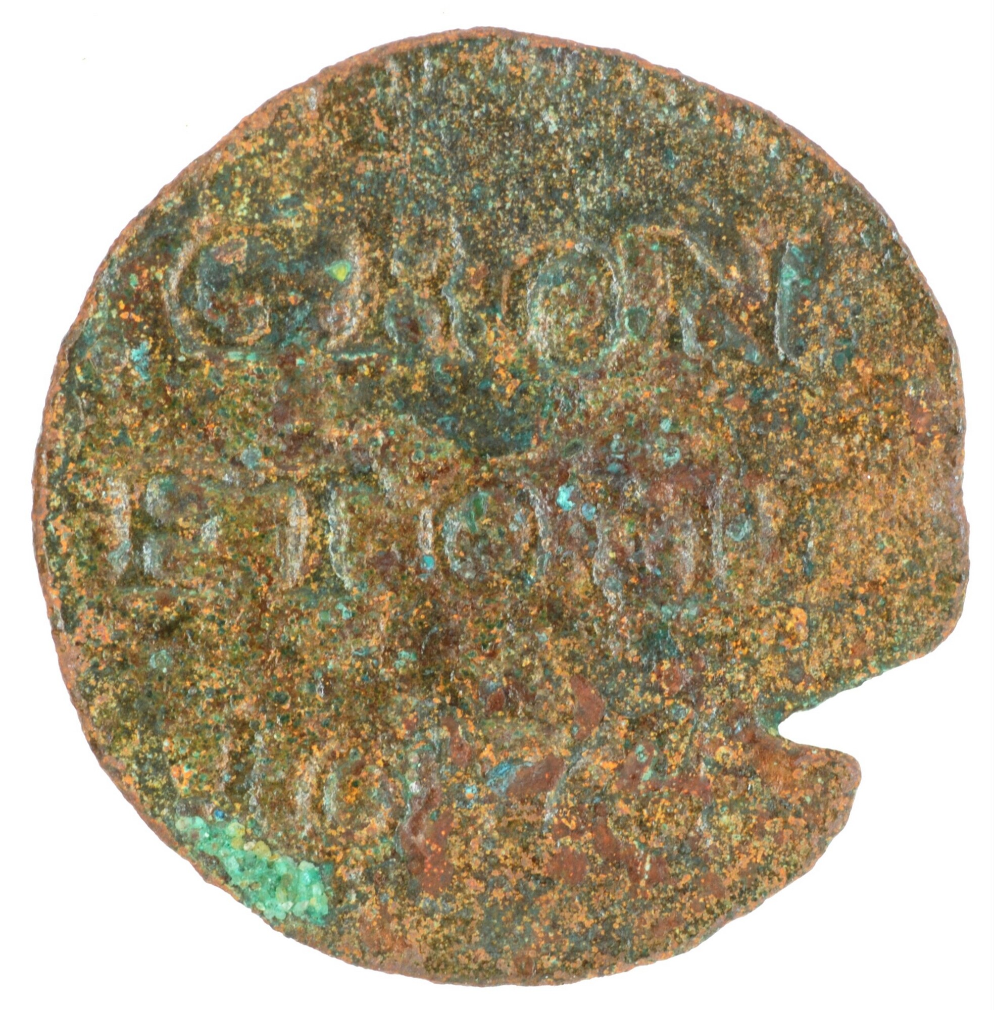 Duit; Groningen en Ommeland provincie; (1581-1795); vz.: in drie regels: GRON• / ET•OML / 1674; kz.: met gesloten kroon gekroond en versierd wapenschild van Groningen en Ommelanden; muntplaats: gewicht: 1.38 gram; Groningen; referentie: Purmer / Wiel 8001 var (punt na GRON), CNM 2.20.23