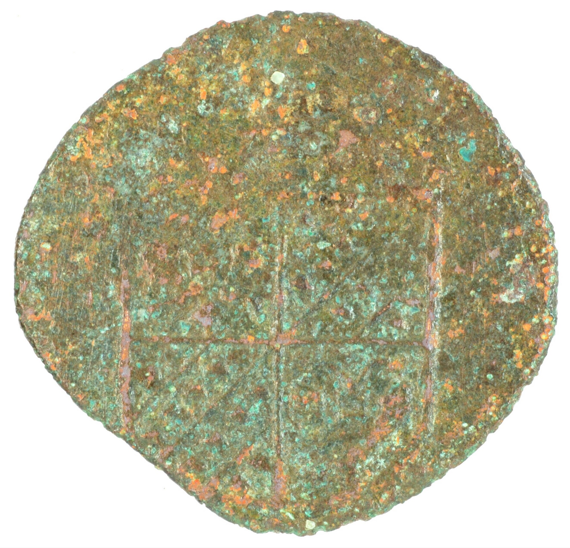 Duit; Groningen en Ommeland provincie (1581-1795); vz.: in drie regels: GRO[N] / ET•O[ML] / 1682; kz.: met open kroon gekroond wapenschild van Groningen en Ommelanden; muntplaats: Groningen; gewicht: 1.54 gram; referentie: Purmer / Wiel 8003, CNM 2.20.24