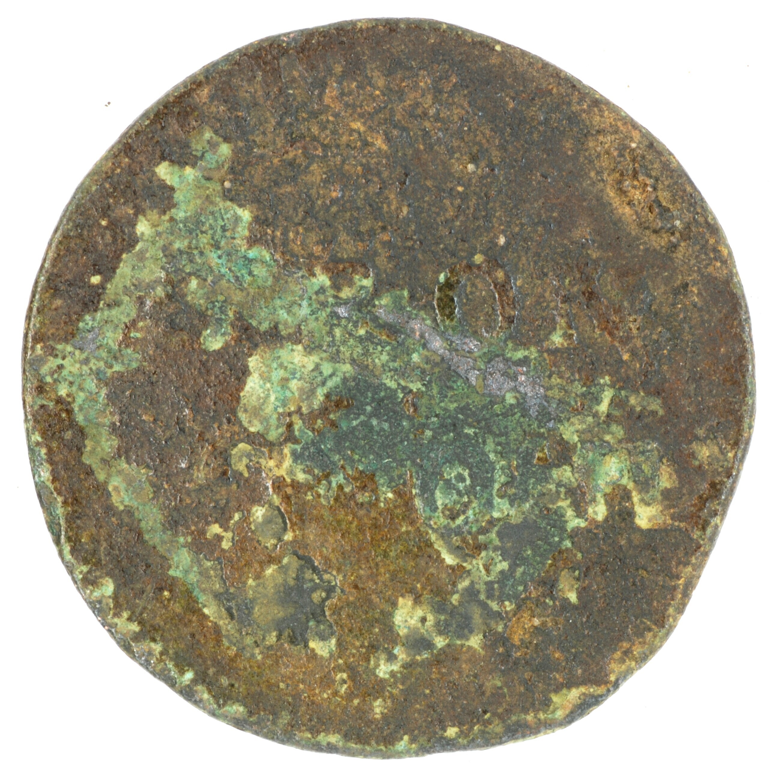 Duit; Groningen en Ommeland provincie (1581-1795); vz.: in drie regels: G[RON] / ET•]O[ML / 168]5; kz.: met open kroon gekroond wapenschild van Groningen en Ommelanden; muntplaats: Groningen; gewicht: 2.02 gram; referentie: Purmer / Wiel 8003, CNM 2.20.24