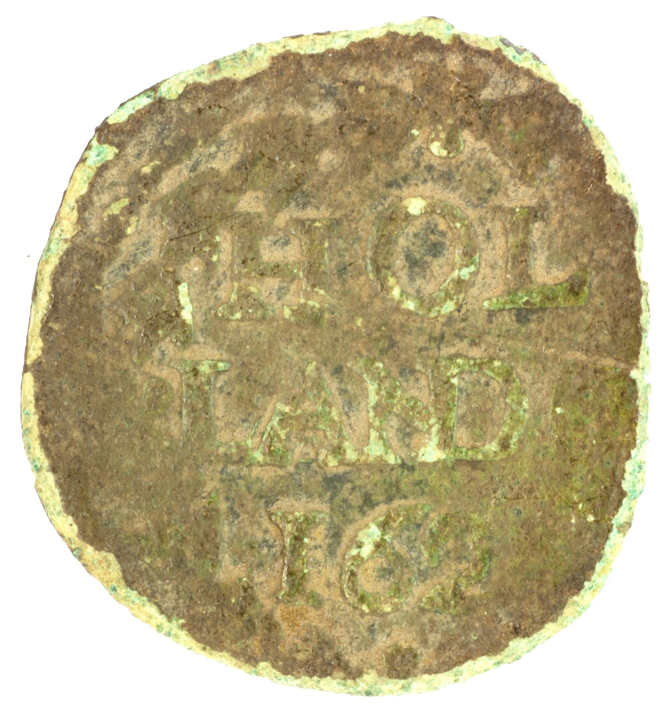 Duit; Holland Provincie (1581-1795); vz.: binnen een bladerkans in drie regels: HOL / LAND[IA] / 1626; kz.: maagd gezeten binnen en niet gesloten omheining, met de rechterarm omhoog, wijzend naar de zon, met omschrift [•AVX•NOS•]IN•[NOM•DOM•(rozet)]; muntplaats: Dordrecht; gewicht: 1.63 gram; referentie: Purmer / Wiel 2005, CNM 2.28.125