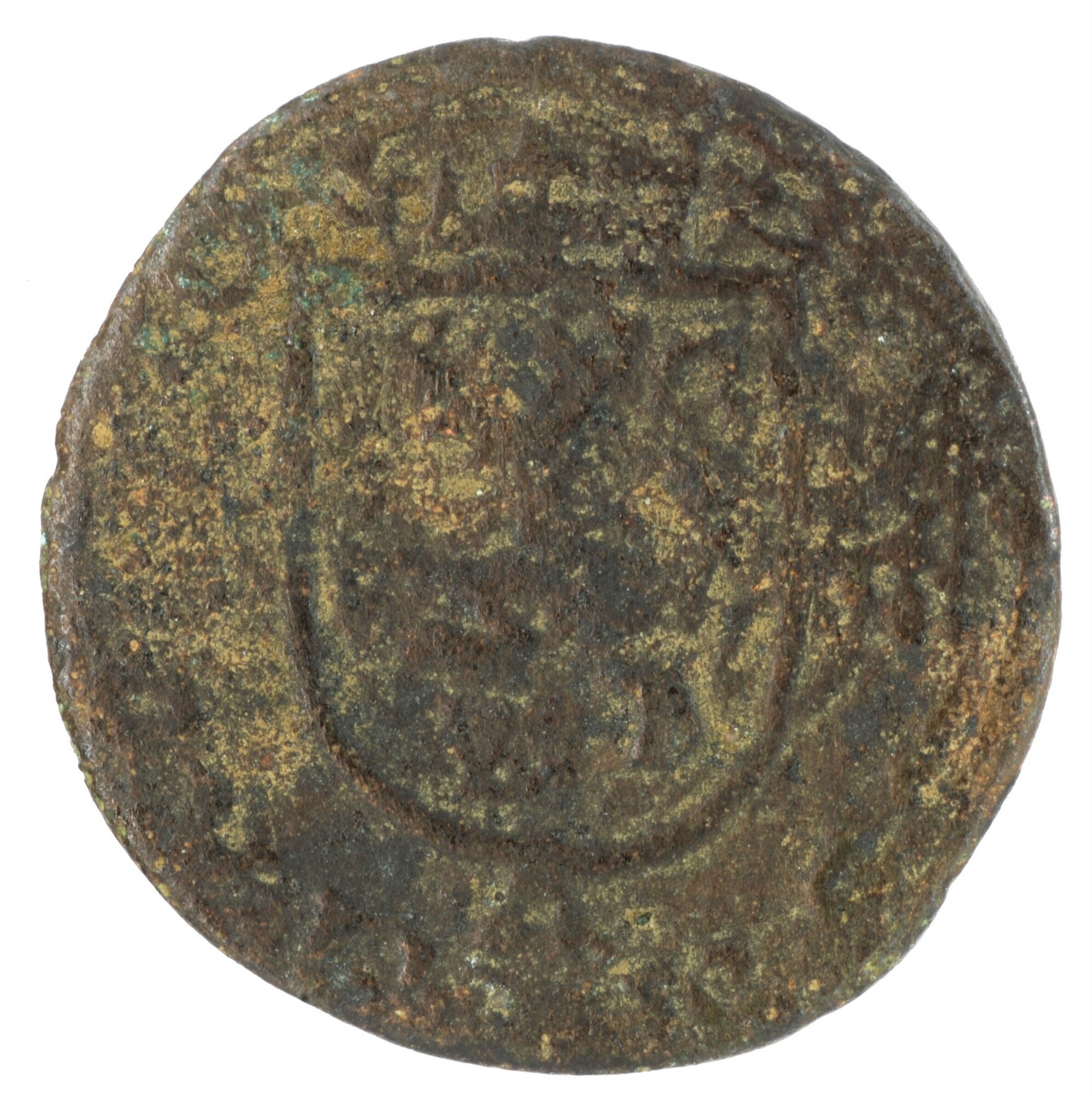 Duit; Holland Graafschap (1049-1581); Philips II (1555-1581); vz.: gekroond wapenschild van Holland, met omschrift [PHS]• D:G•HIS[PZ•REX•COMES•]HO[L•]; kz.: stokkenkruis achter vuurijzer met vonden binnen een omheining, met omschrift D[OMINV]S•M[I]HI•A[DIVT]O[R•]; muntplaats: Dordrecht; gewicht: 2.52 gram; zeldzaam; referentie: Gelder / Hoc 264.11, Purmer / Wiel 2002, CNM 2.28.42, vHoudt II 369