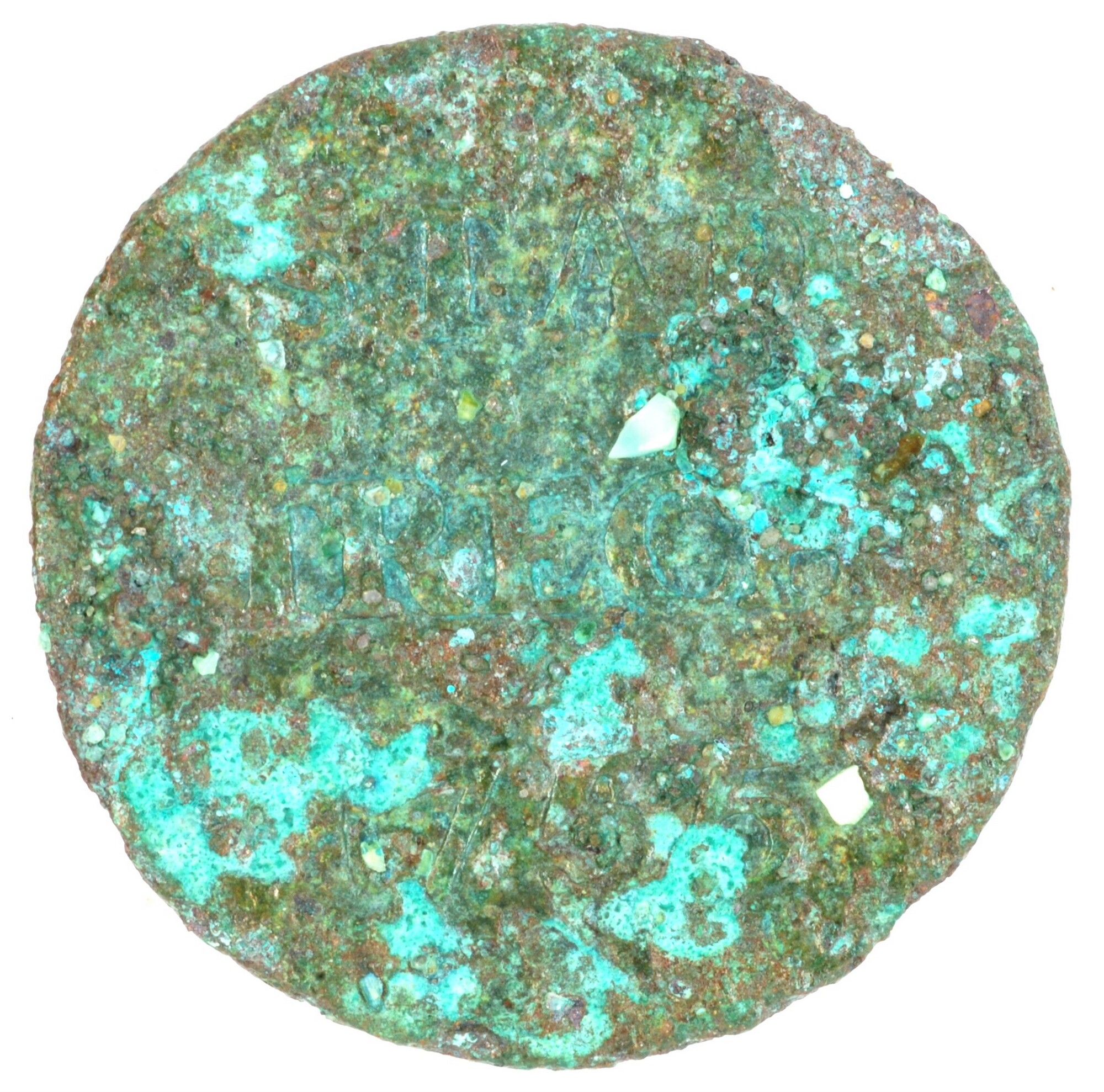 Duit; Utrecht Stad (1581-1795); vz.: gedamasceerd stedelijk wapenschild grof gearceerd, gehouden door twee leeuwen, de afsnede bestaat uit een dunne lijn, met hieronder een versierde accolade met een kleine schelp; kz.: in drie regels: STAD / [U]TRECHT / [1]755; muntplaats: Utrecht; gewicht: 2.99 gram; referentie: Purmer / Wiel 5111, CNM 2.44.21