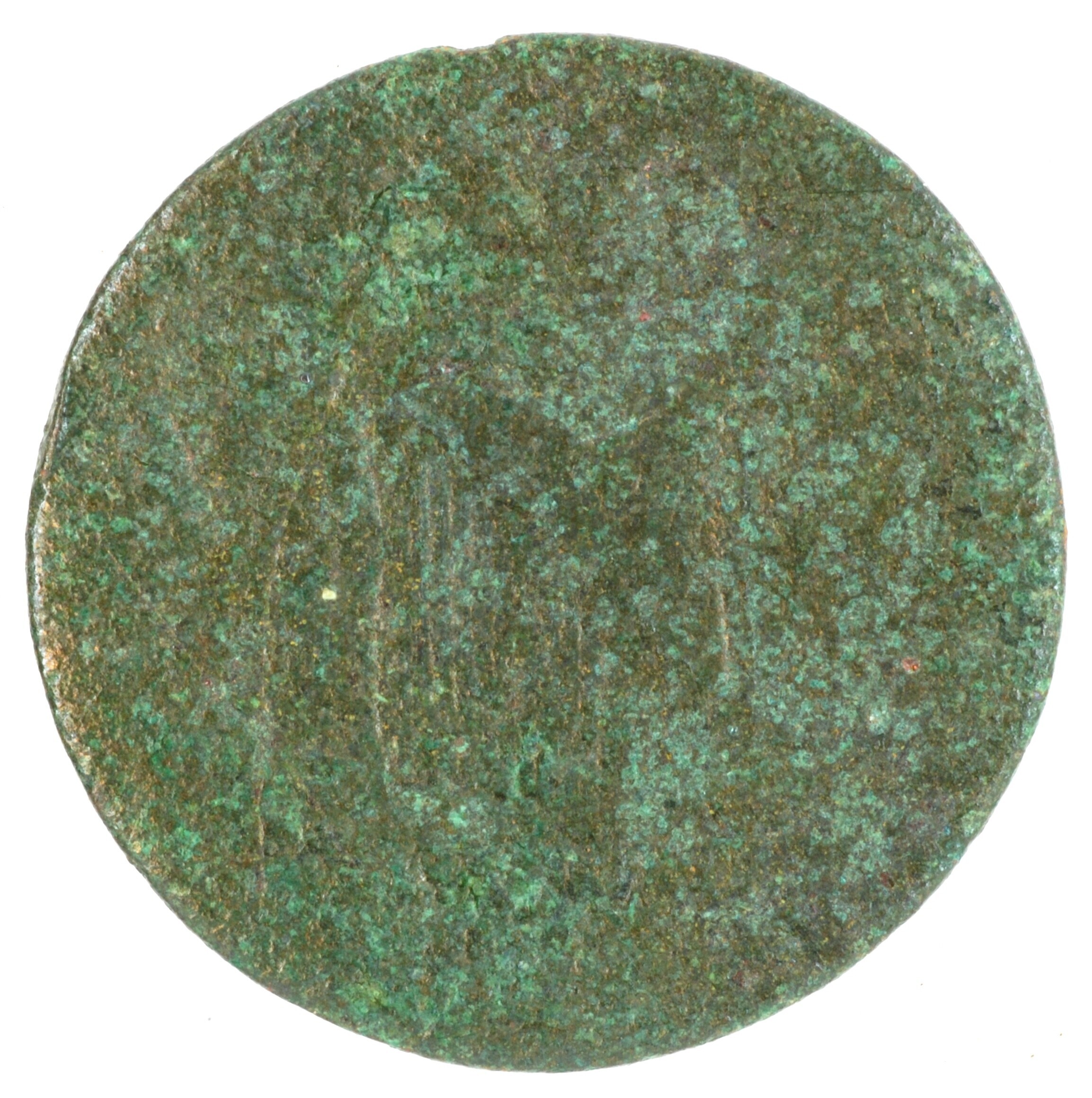 Duit; Utrecht Stad (1581-1795); vz.: in drie regels: [STAD / UTRECHT / 17..]; kz.: gedamasceerd stedelijk wapenschild fijn gearceerd, gehouden door twee leeuwen, de afsnede bestaat uit een dikke lijn, met hieronder een versierde accolade met een grote schelp; muntplaats: Utrecht; 2.83; referentie: Purmer / Wiel 5113, CNM 2.44.22