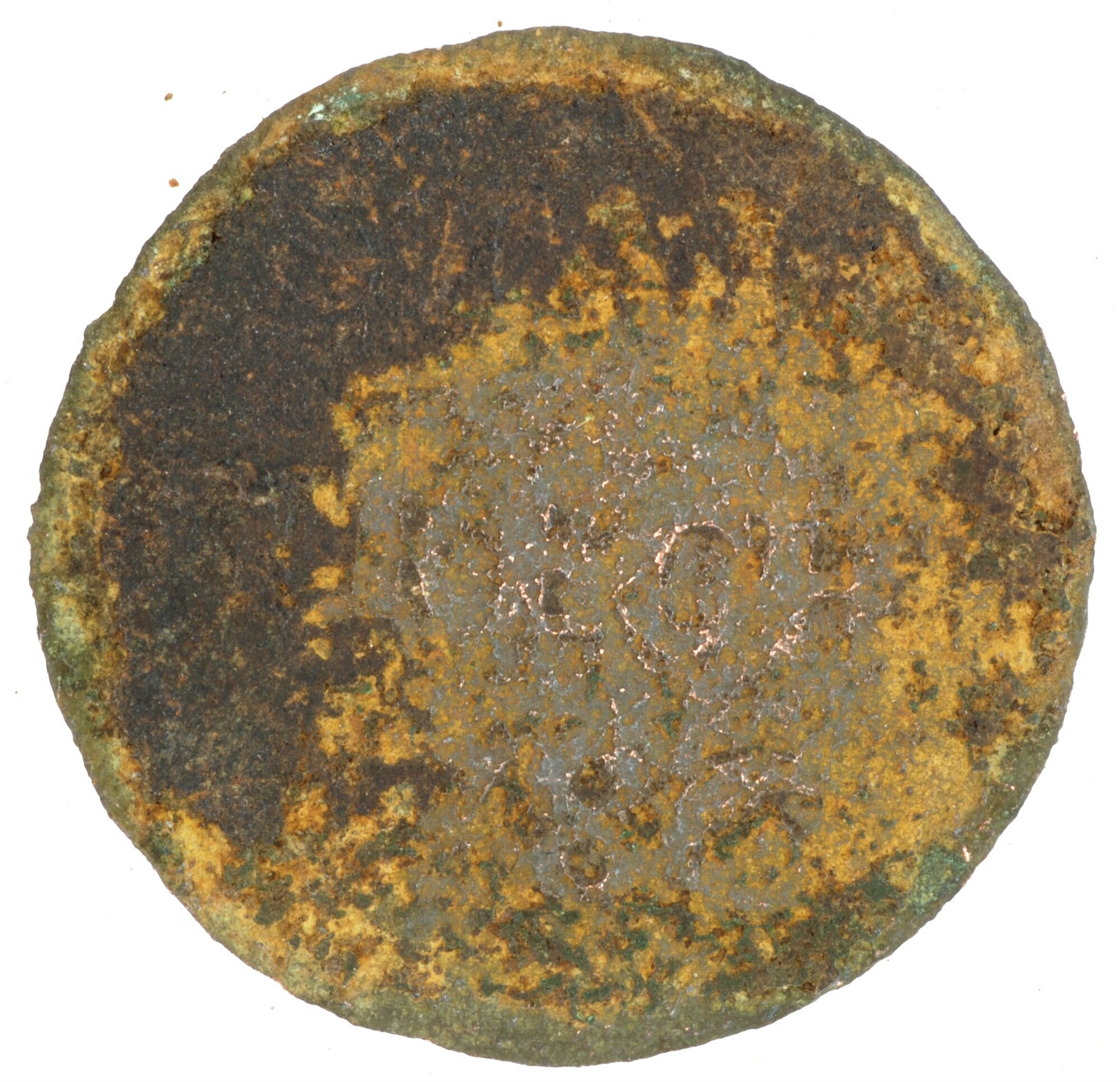 Duit; Utrecht Stad (1581-1795); vz.: in drie regels: ST[AD] / UT[RE]CH[T / 1]7[..]; kz.: gedamasceerd stedelijk wapenschild fijn gearceerd, gehouden door twee leeuwen, de afsnede bestaat uit een dikke lijn, met hieronder een versierde accolade met een grote schelp; muntplaats: Utrecht; gewicht: 2.01 gram; referentie: Purmer / Wiel 5113, CNM 2.44.22