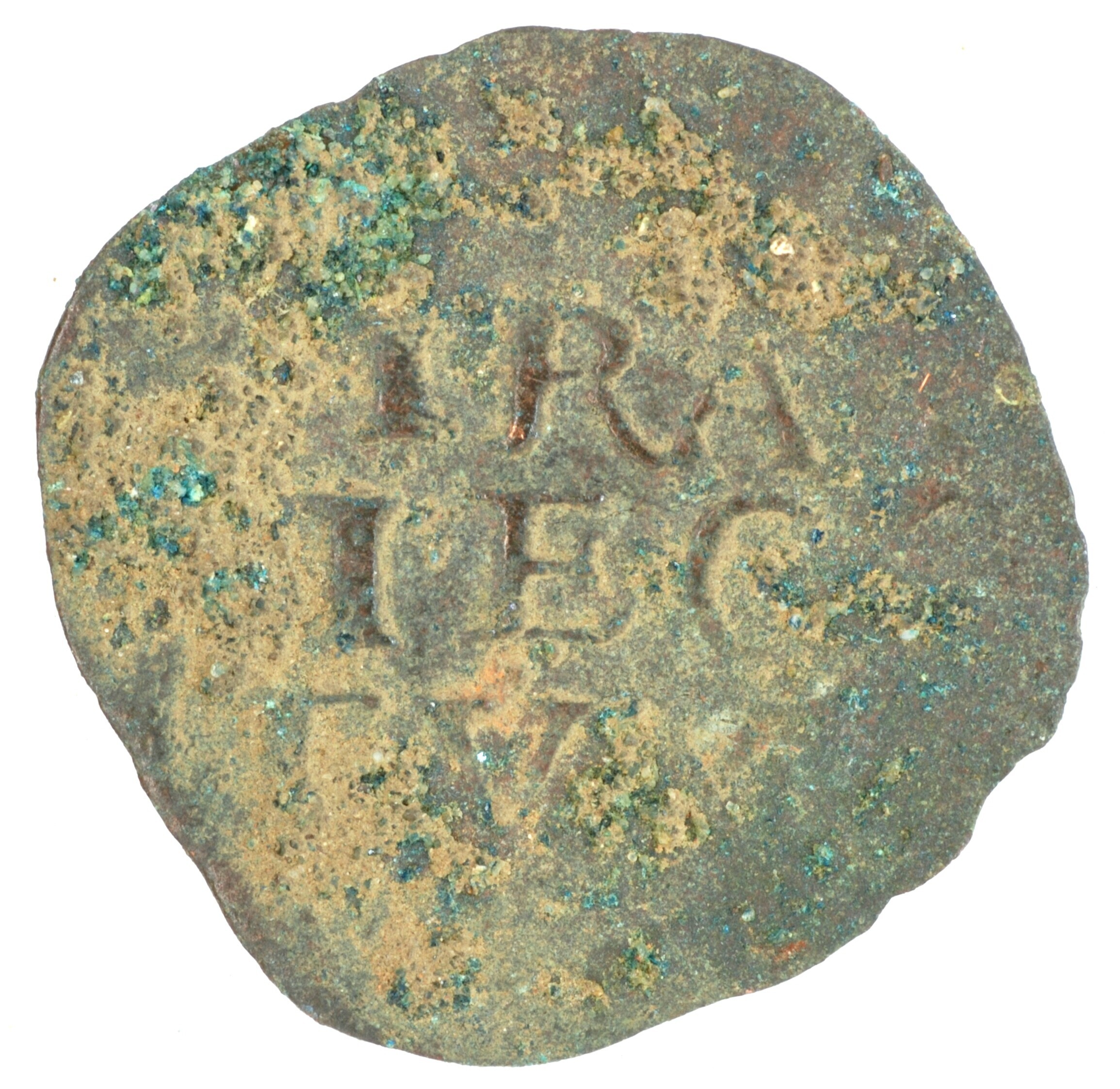 Duit; Utrecht Stad (1581-1795); vz.: binnen een bladerkrans in vier regels: TRA / IEC / TVM / [16??]; kz.: gedamasceerd stedelijk wapenschild met rondom versiering; muntplaats: Utrecht; gewicht: 0.76 gram; referentie: Purmer / Wiel 5103, CNM 2.44.10