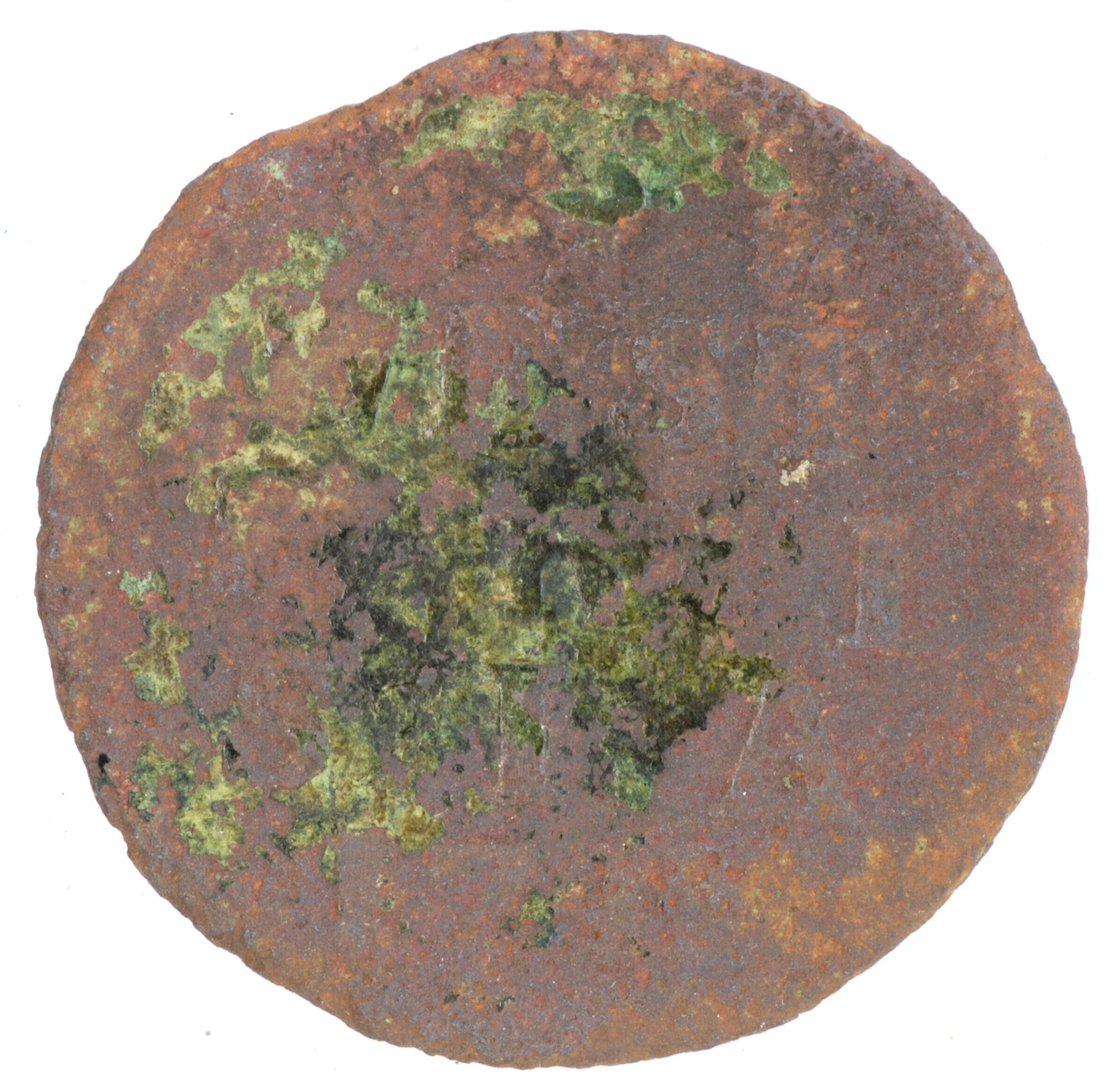 Duit; West-Friesland Provincie (1581-1795); vz.: in vijf regels: [rozet] (haan) [rozet] / WEST / FRI / SIAE / 1742; kz.: gekroond wapenschild van West-Friesland met lauwertakken; muntplaats: Medemblik; gewicht: 2.45 gram; referentie: Purmer / Wiel 3011, CNM 2.46.98