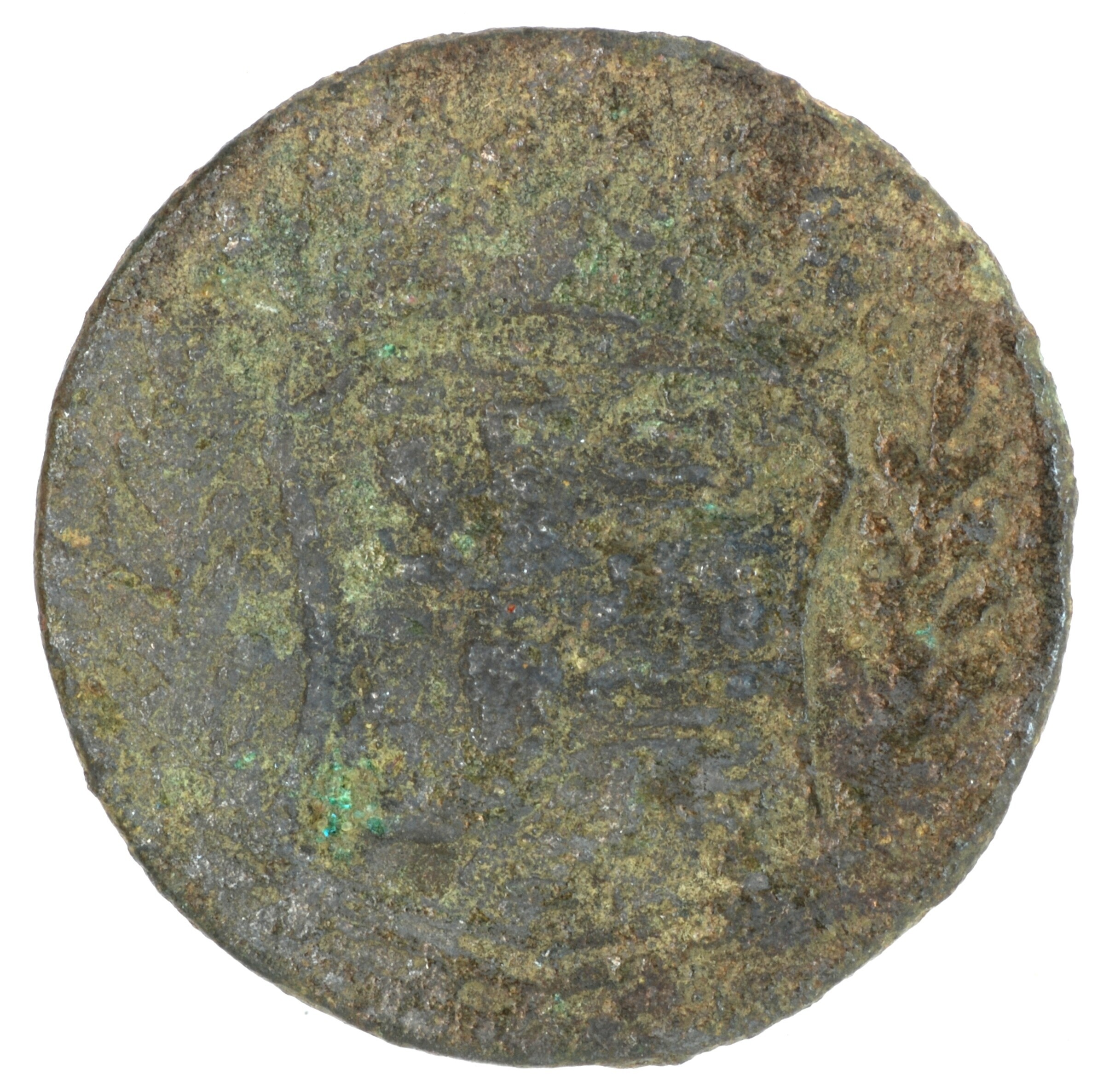 Duit; West-Friesland Provincie (1581-1795); vz.: in vijf regels: rozet (knol) [rozet] / WES[T] / FR[I] / SIAE[•] / [•]1[7]27[•]; kz.: gekroond wapenschild van West-Friesland met lauwertakken, de kroon met ronde fleurons; muntplaats: Medemblik; gewicht: 2.96 gram; referentie: Purmer / Wiel 3009, CNM 2.46.96