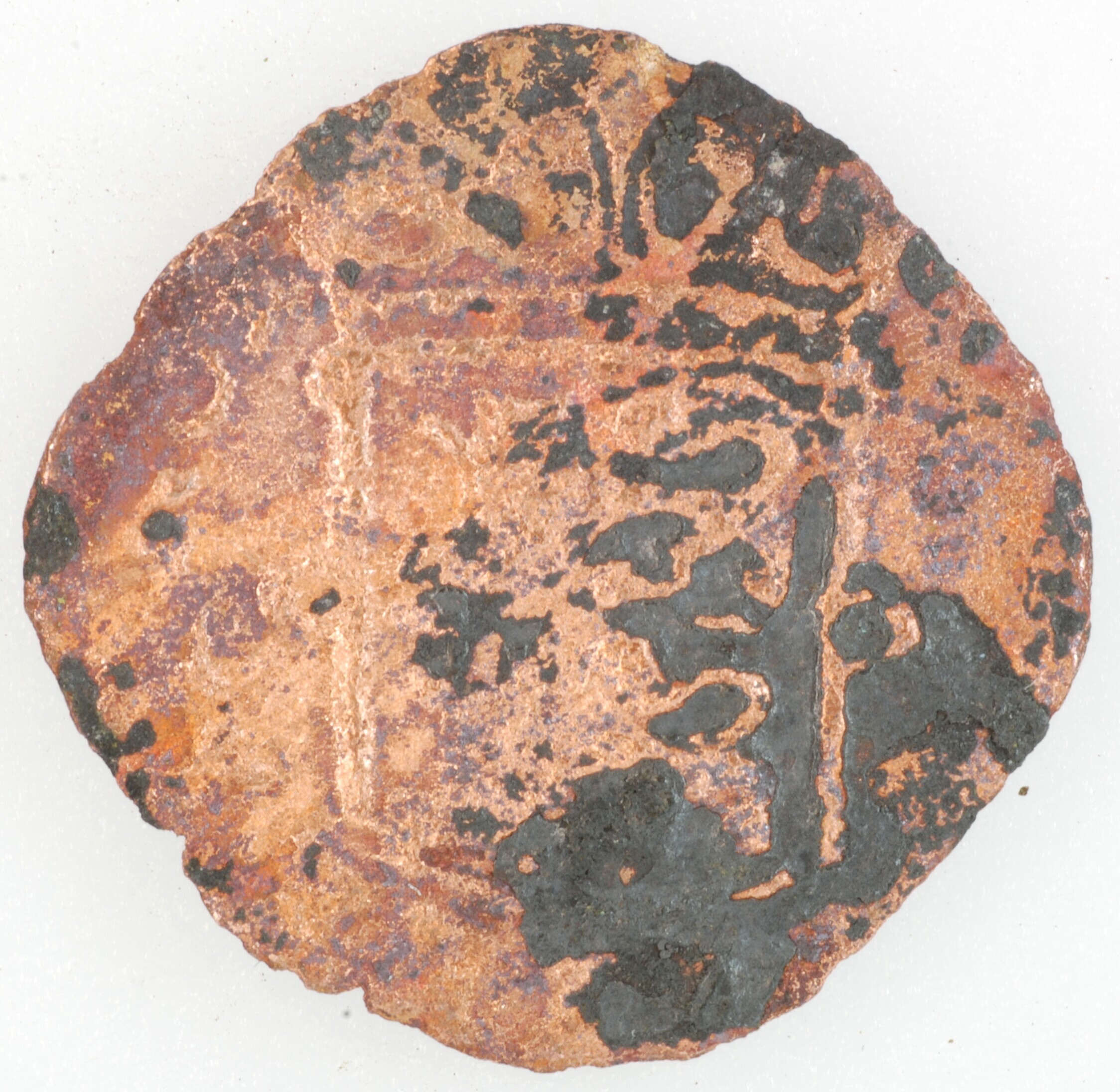 Duit; West-Friesland Provincie (1581-1795); vz.: binnen een bladerkrans in drie regels WEST / FRI[S]I[AE] / 166[.]; kz.: gekroond en versierd wapenschild van West-Friesland, terzijde twee punten, met omschrift [DEVS•FORTI•]ET•SP•NOS; muntplaats: Hoorn; gewicht: 0.94 gram; referentie: Purmer / Wiel 3003, CNM 2.46.90