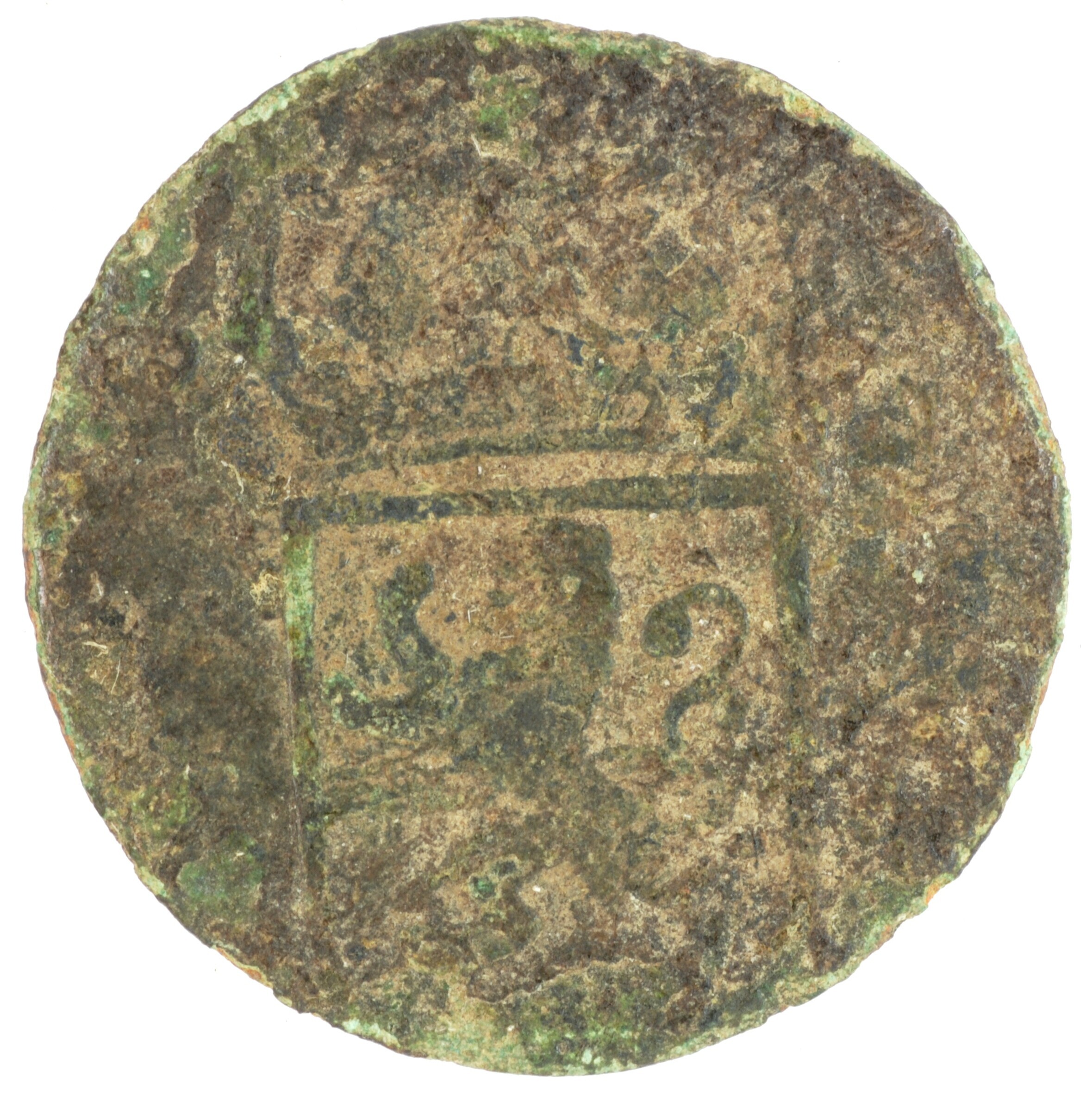 Duit; Overijssel provincie (1581-1795); vz.: in vier regels: [rozet (adelaar) rozet] / OVER / YSSEL / [1]767[•]; kz.: gekroond wapenschild van Overijssel, met omschrift [VIGILATE – ET ORATE]; muntplaats: Kampen; gewicht: 1.81 gram; referentie: Purmer / Wiel 7009, CNM 2.38.115