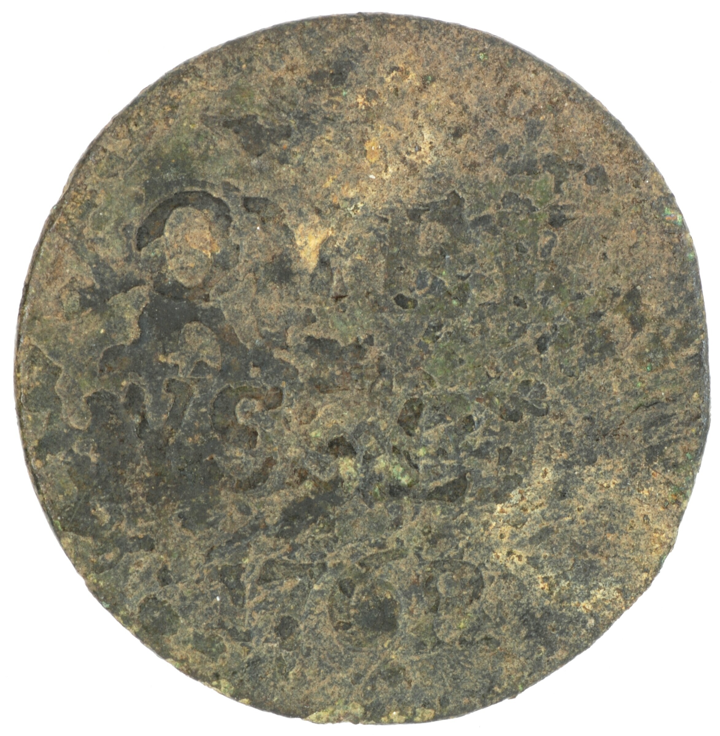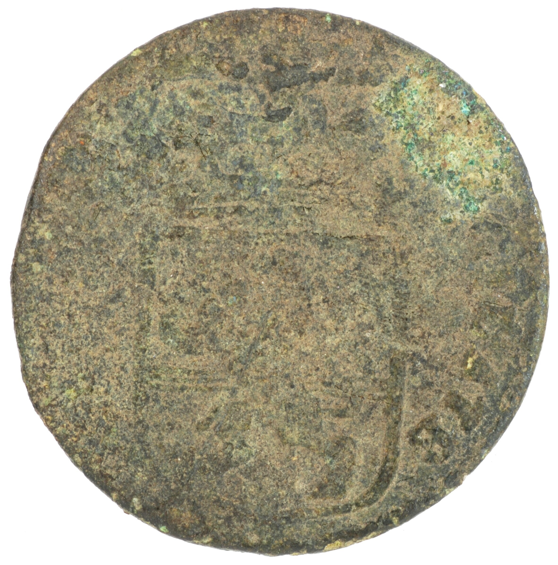Duit; Overijssel provincie (1581-1795); vz.: in vier regels: [rozet (adelaar) rozet] / OVER / YSSEL / 1768[•]; kz.: gekroond wapenschild van Overijssel, met omschrift [VI]GILATE – [ET ORATE]; muntplaats: Kampen; gewicht: 2.79 gram; referentie: Purmer / Wiel 7009, CNM 2.38.115