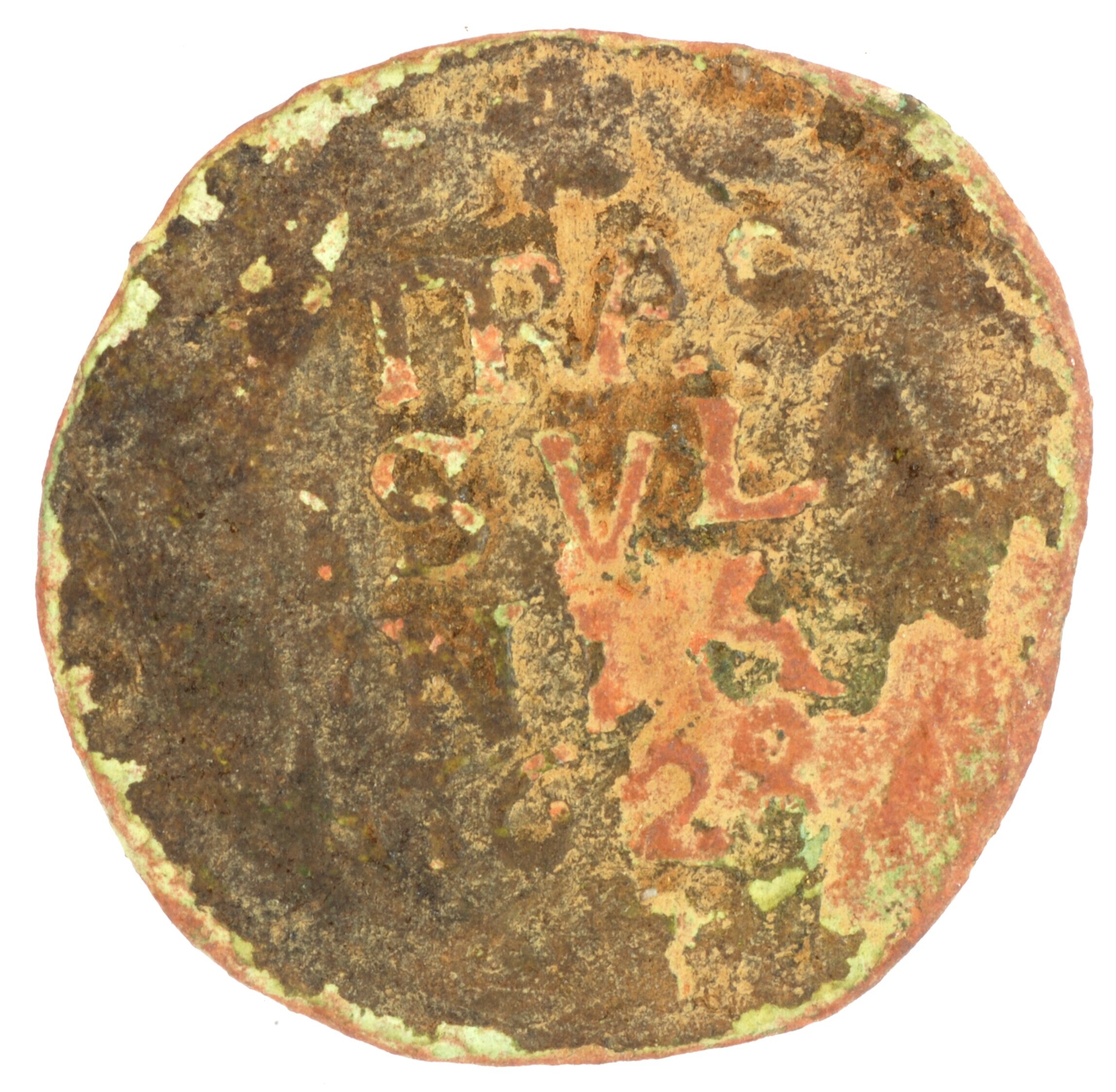 Duit; Overijssel provincie (1581-1795); vz.: binnen een bladerkrans; kz.: in vier regels: TR^AS / ISVLA / •NIA• / 1628; kz.: gekroond en versierd wapenschild van Overijssel; muntplaats: Kampen; gewicht: 1.67 gram; referentie: Purmer / Wiel 7005, CNM 2.38.111