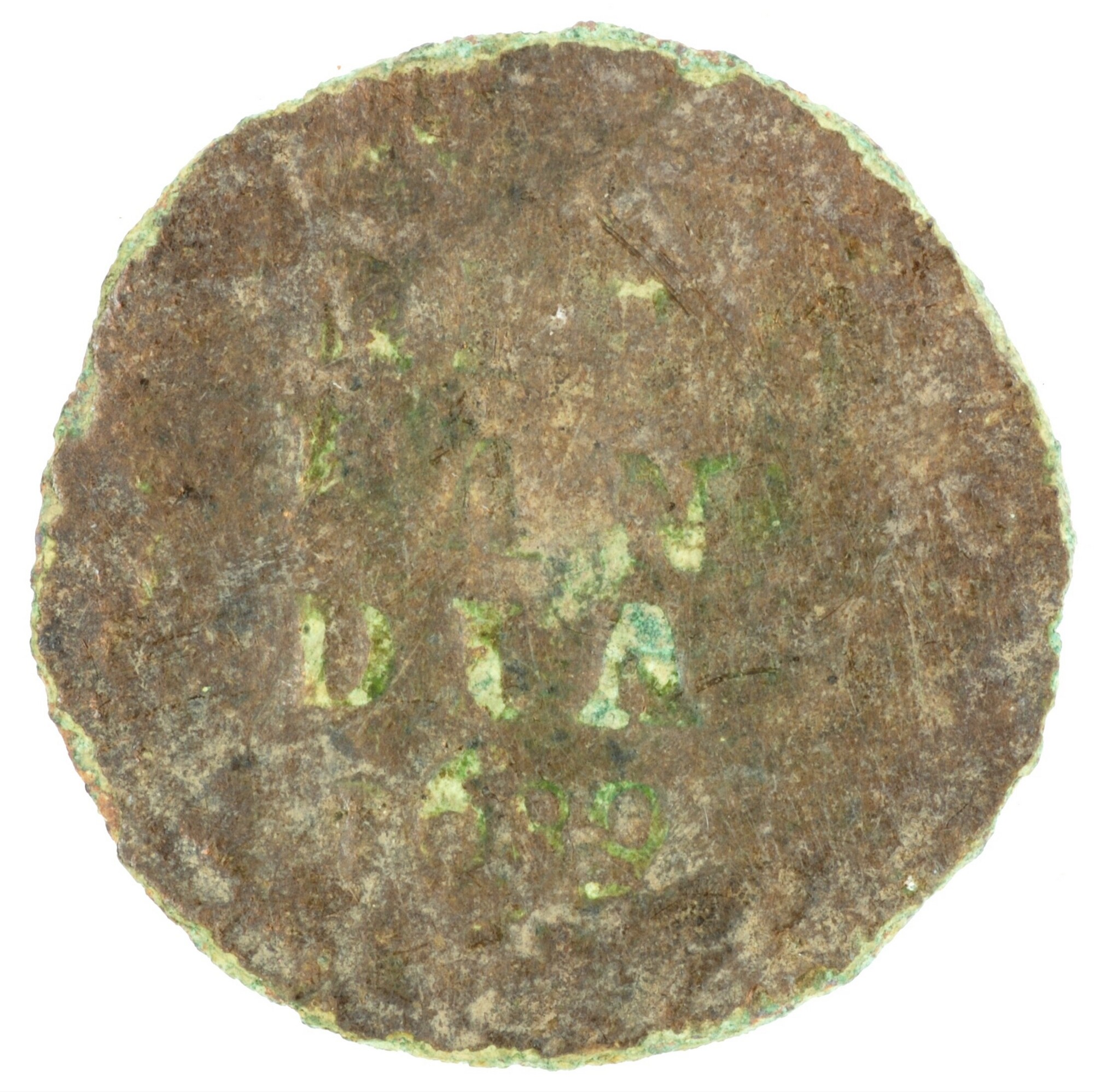 Duit; Zeeland Provincie (1581-1795); vz.: de maagd, zittend achter het wapenschild van Zeeland in een tuin met gesloten omheining, met omschrift LUCTOR• - [ET•EMERGO• (burcht) •]; kz.: binnen een bladerkrans in vier regels: ZE[E] / LAN / DIA / 1689; muntplaats: Middelburg; gewicht: 1.28 gram; referentie: Purmer / Wiel 4007, CNM 2.49.108