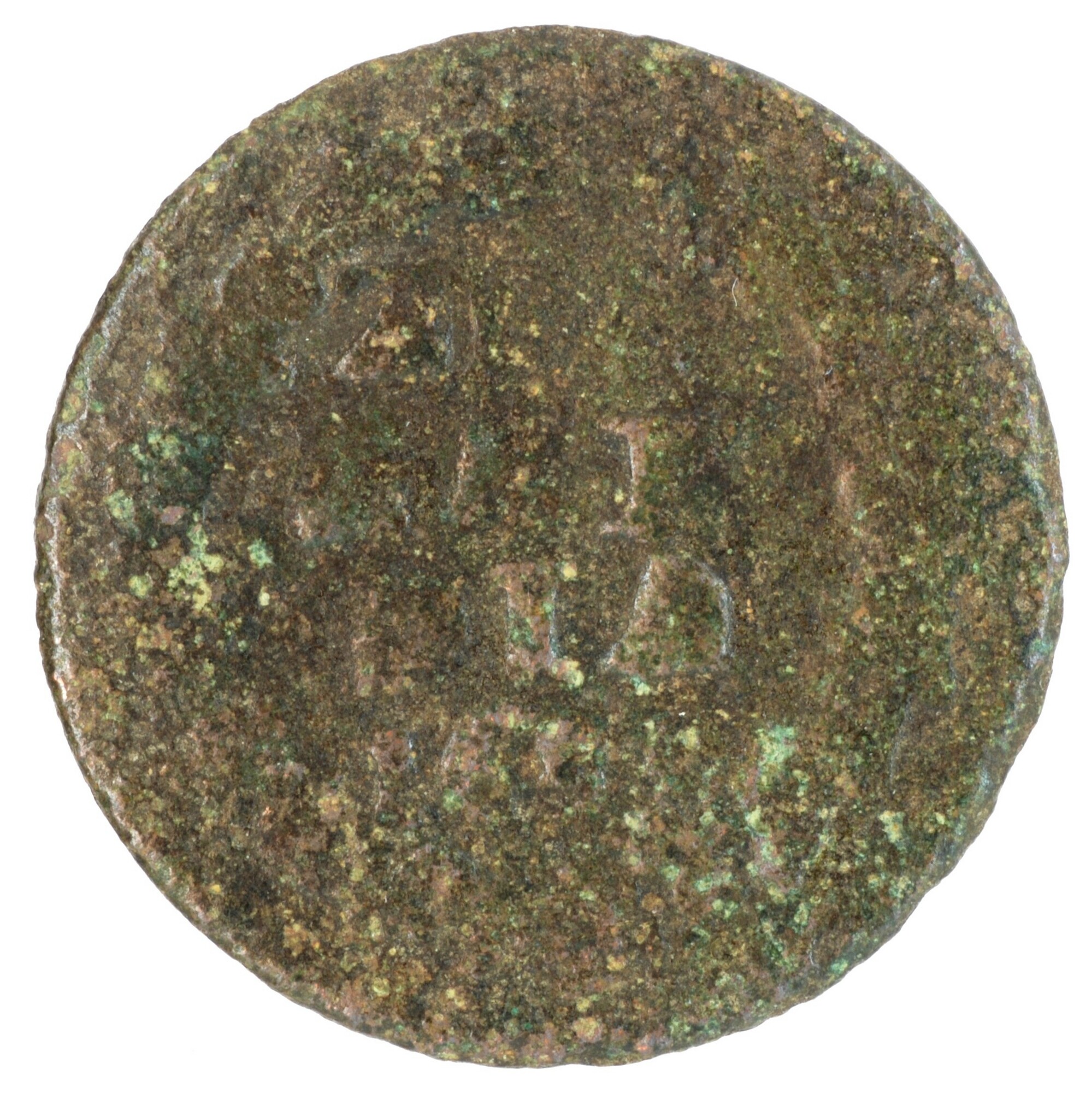 Duit; Zeeland Provincie (1581-1795); vz.: de maagd, zittend achter het wapenschild van Zeeland in een tuin met gesloten omheining, met omschrift [LUCTOR• – ET•EMERGO; kz.: binnen een bladerkrans in vier regels: ZEE / LAN / DIA / 16[8.]; muntplaats: Middelburg; gewicht: 2.23 gram; referentie: Purmer / Wiel 4007, CNM 2.49.108