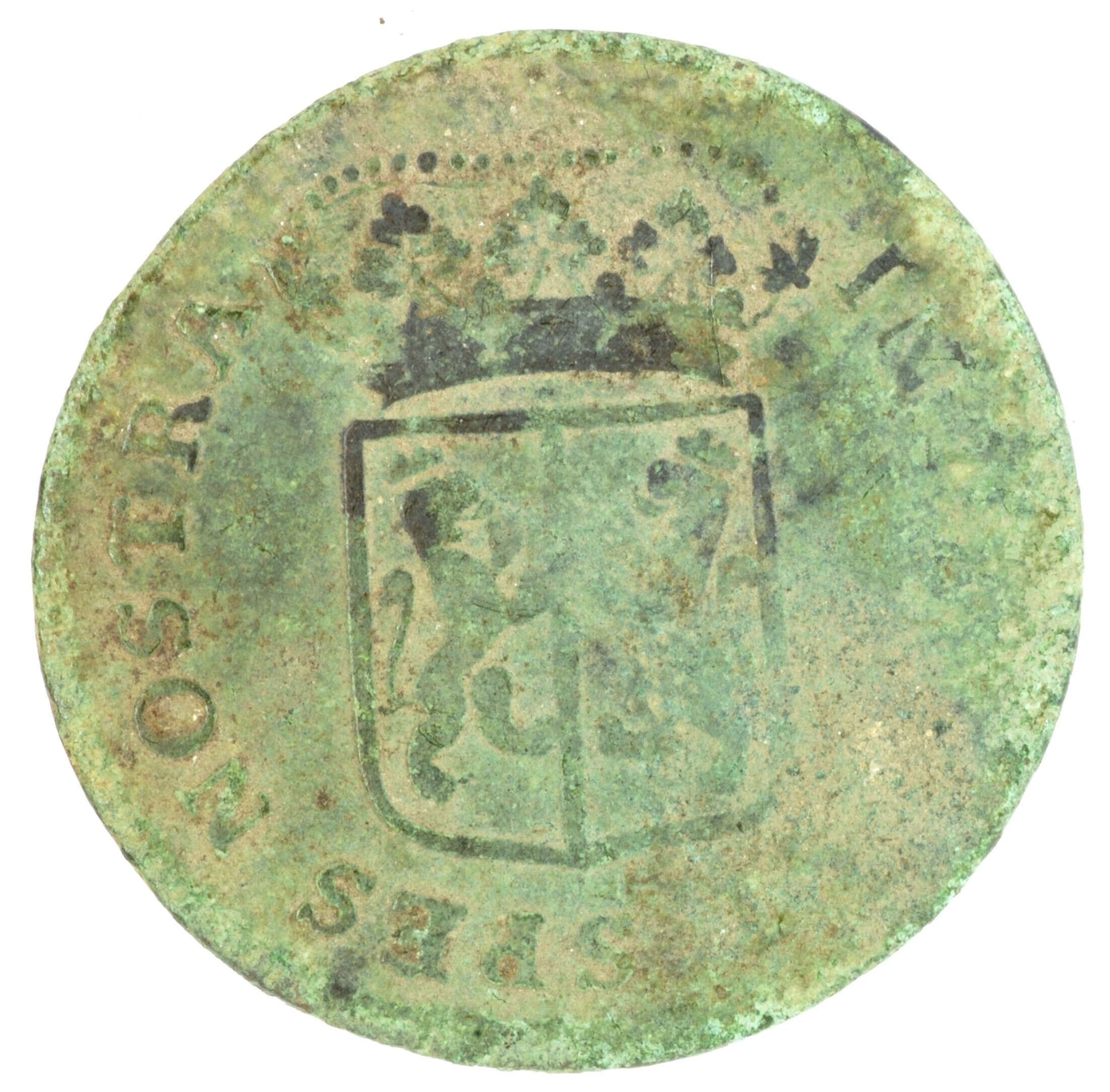 Duit; Gelderland Provincie (1581-1795); vz.: in vijf regels: •D• / GEL / RIAE / 1759 / (geknotte boom met loot); kz.: gekroond wapenschild van Gelderland, met omschrift IN D[EO E]ST SPES NOSTRA; vz.: in vijf regels: •D• / GEL / RIAE / 1759 / (geknotte boom met loot); muntplaats: Harderwijk; gewicht: 2.17 gram; referentie: Purmer ...