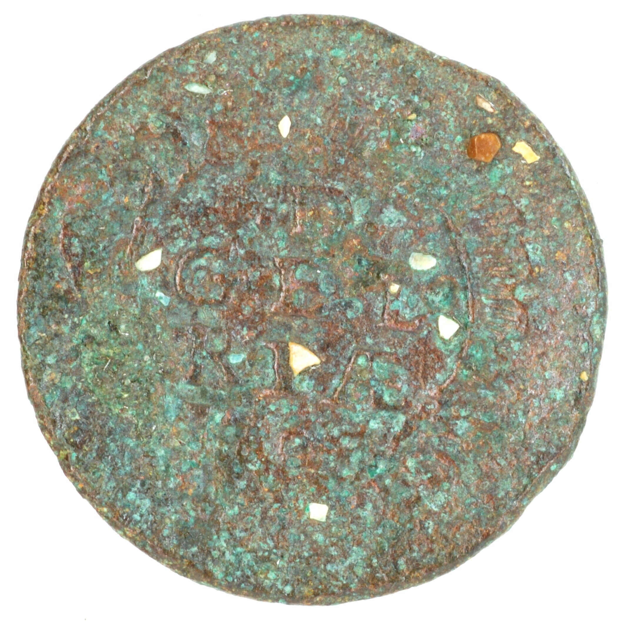 Duit; Gelderland Provincie (1581-1795); vz.: in vijf regels: •D• / GEL / RIAE / 176[. / (geknotte boom met loot)]; kz.: gekroond wapenschild van Gelderland, met omschrift [IN DEO EST SP]ES N[OSTRA]; muntplaats: Harderwijk; gewicht: 2.82 gram; referentie: Purmer / Wiel 1017, CNM 2.17.195