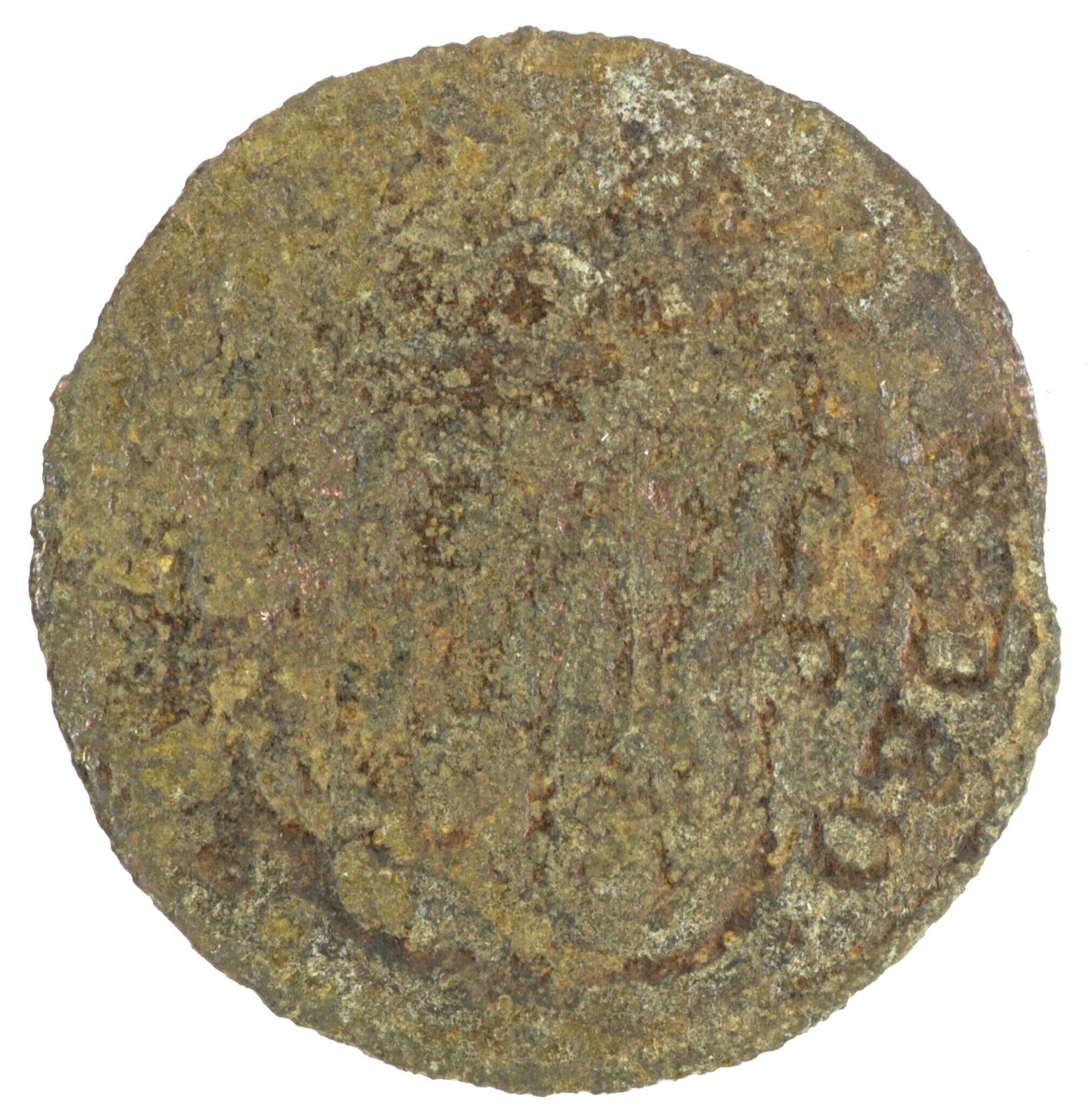 Duit; Gelderland Provincie (1581-1795); vz.: in vier regels: •[D]• / GEL / RIAE / •1663•; kz.: gekroond wapenschild van Gelderland, sober versierd met ogen, met omschrift IN•DEO• – •S[P•NOST•]; muntplaats: Harderwijk; gewicht: 1.30 gram; referentie: Purmer / Wiel 1009, CNM 2.17.186