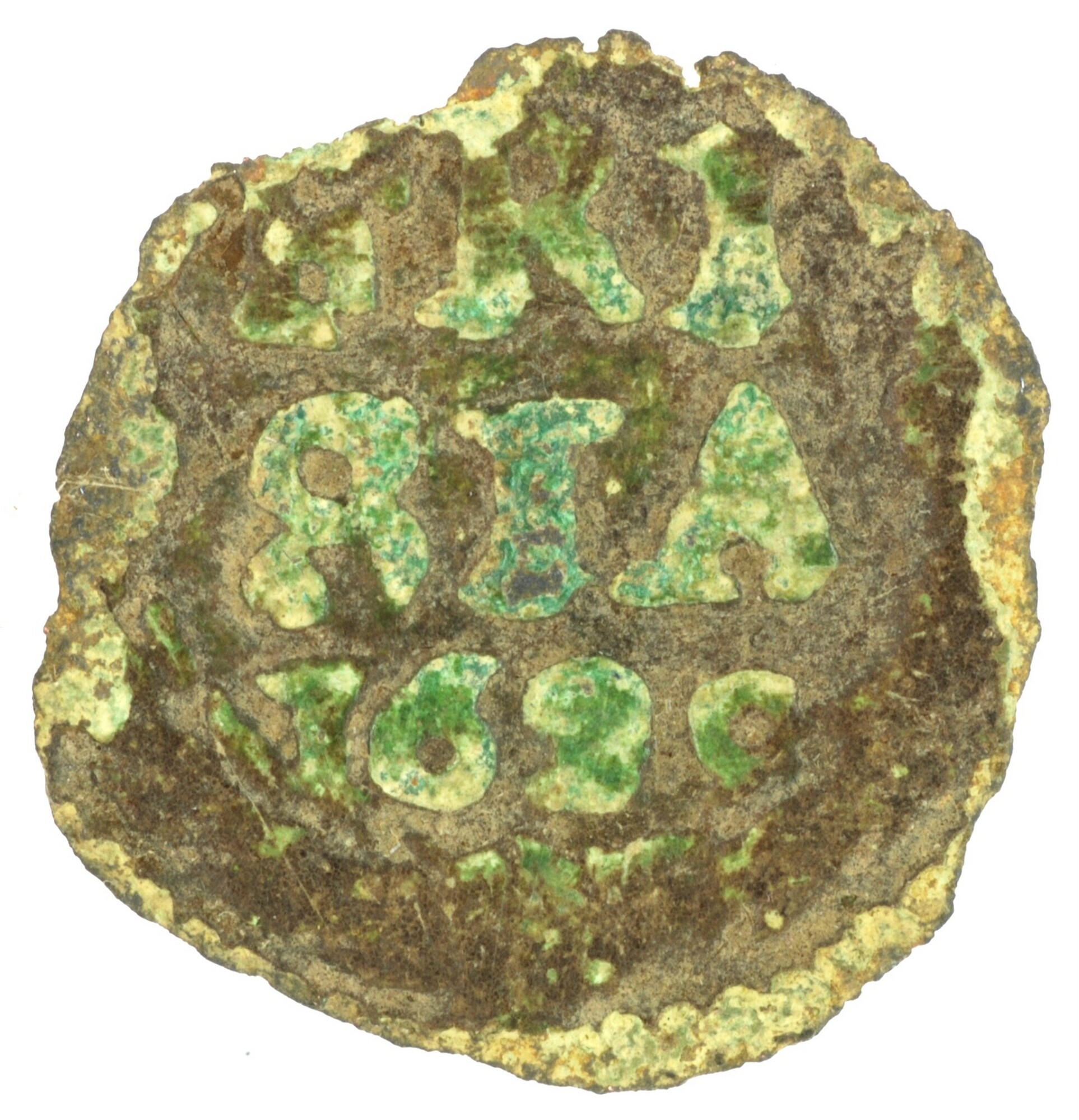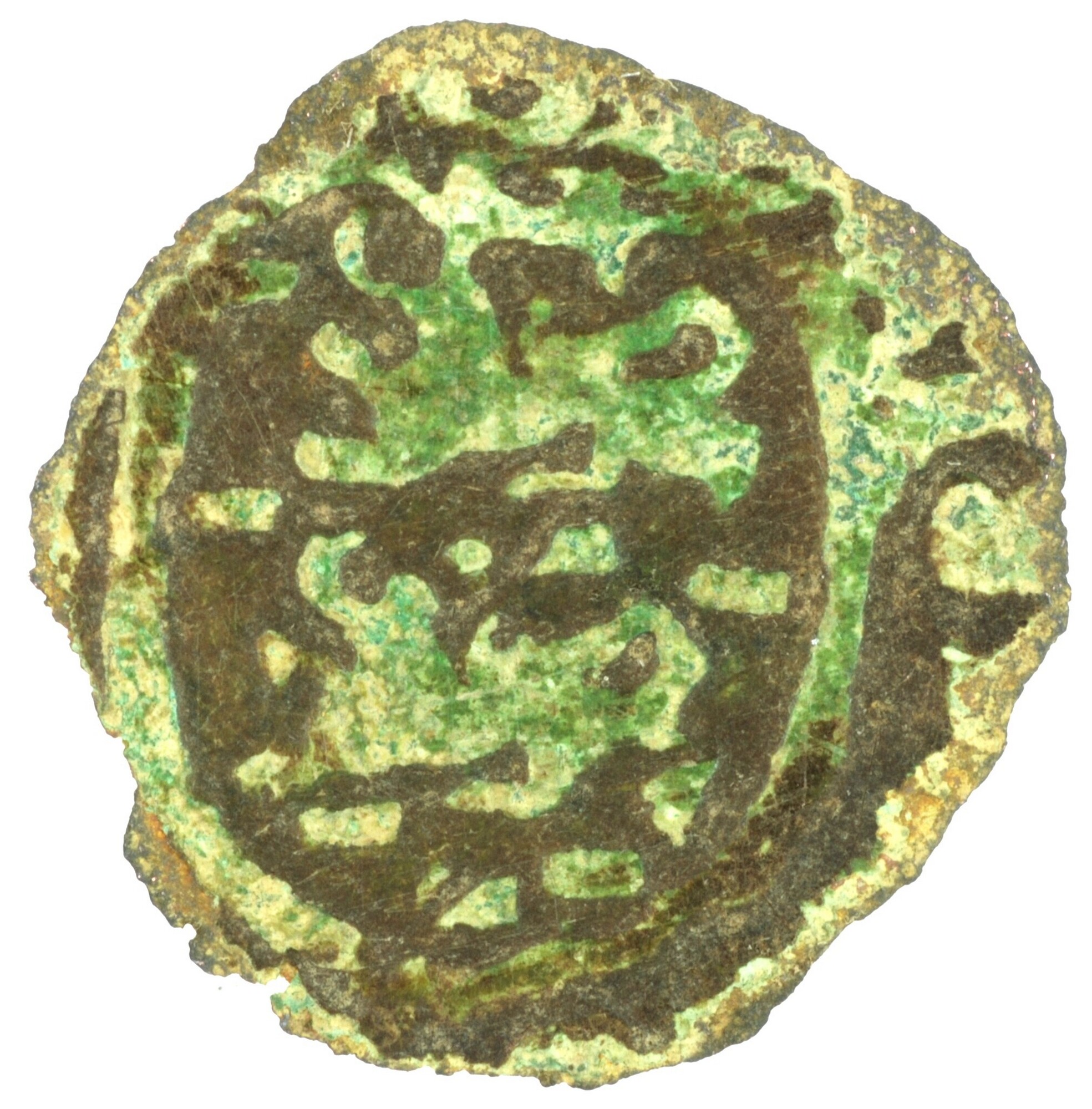 Duit; Friesland Provincie (1581-1795); vz.: binnen een bladerkrans in drie regels FRI / •SIA• / 1629; kz.: met open kroon gekroond en versierd wapenschild van Friesland, met omschrift NIS[I•DNS • NOBISCVM]; muntplaats: Leeuwarden; gewicht: 0.52 gram; referentie: Purmer / Wiel 6006, CNM 2.16.142