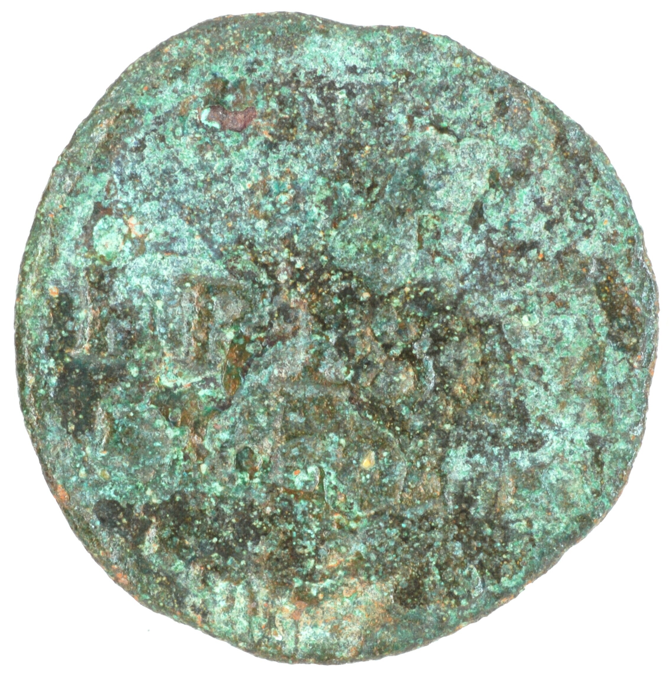 Duit; Friesland Provincie (1581-1795); vz.: in vier regels: bladornament [(klimmende leeuw) bladornament] / FRISIA / (rozet) 16[..] (rozet) / bladornament (rozet) bladornament; kz.: met open kroon gekroond en versierd wapenschild van Friesland; muntplaats: Leeuwarden; referentie: Purmer / Wiel 6008 var (jaartal tussen rozetten), CNM 2.16.144