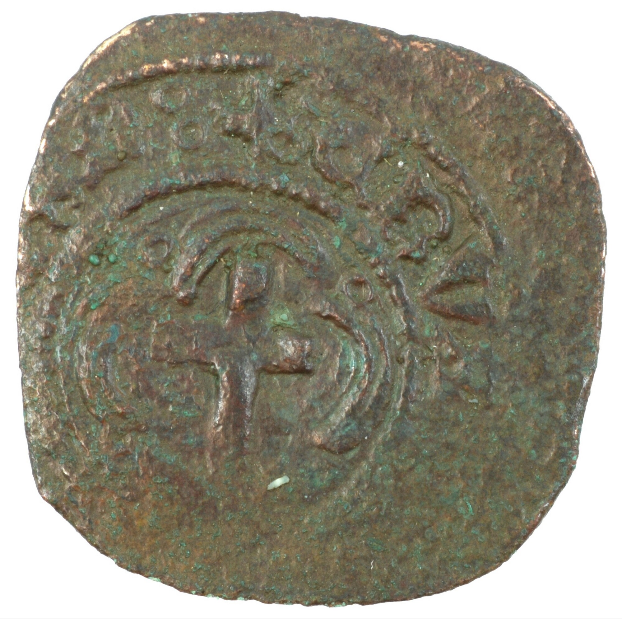 Penny, type I; Schotland; James III (1460-1488); vz.: rijksappel naar beneden gedraaid binnen parelcirkel, met omschrift [+IA]COBVS DEI [GRA REX]; kz.: Latijns kruis binnen vierpas en parelcirkel, met omschrift +:CRVX[:PELLIT:OIE:CRI]M (interpunctie twee cirkels boven elkaar); muntplaats: Edinburgh; gewicht: 1.22 gram; zeldzaam; referentie: Seaby / Purvey 5307 var (op voorzijde geen interpunctie, keerzijde twee cirkels boven ...