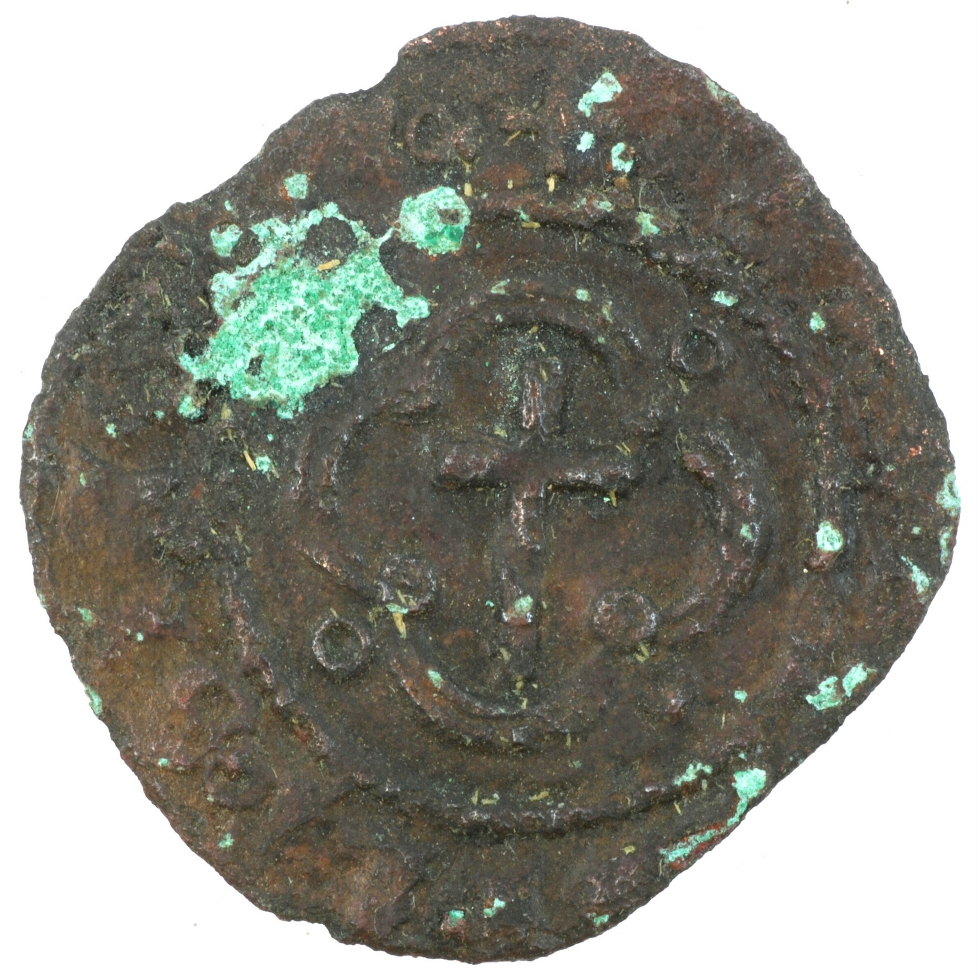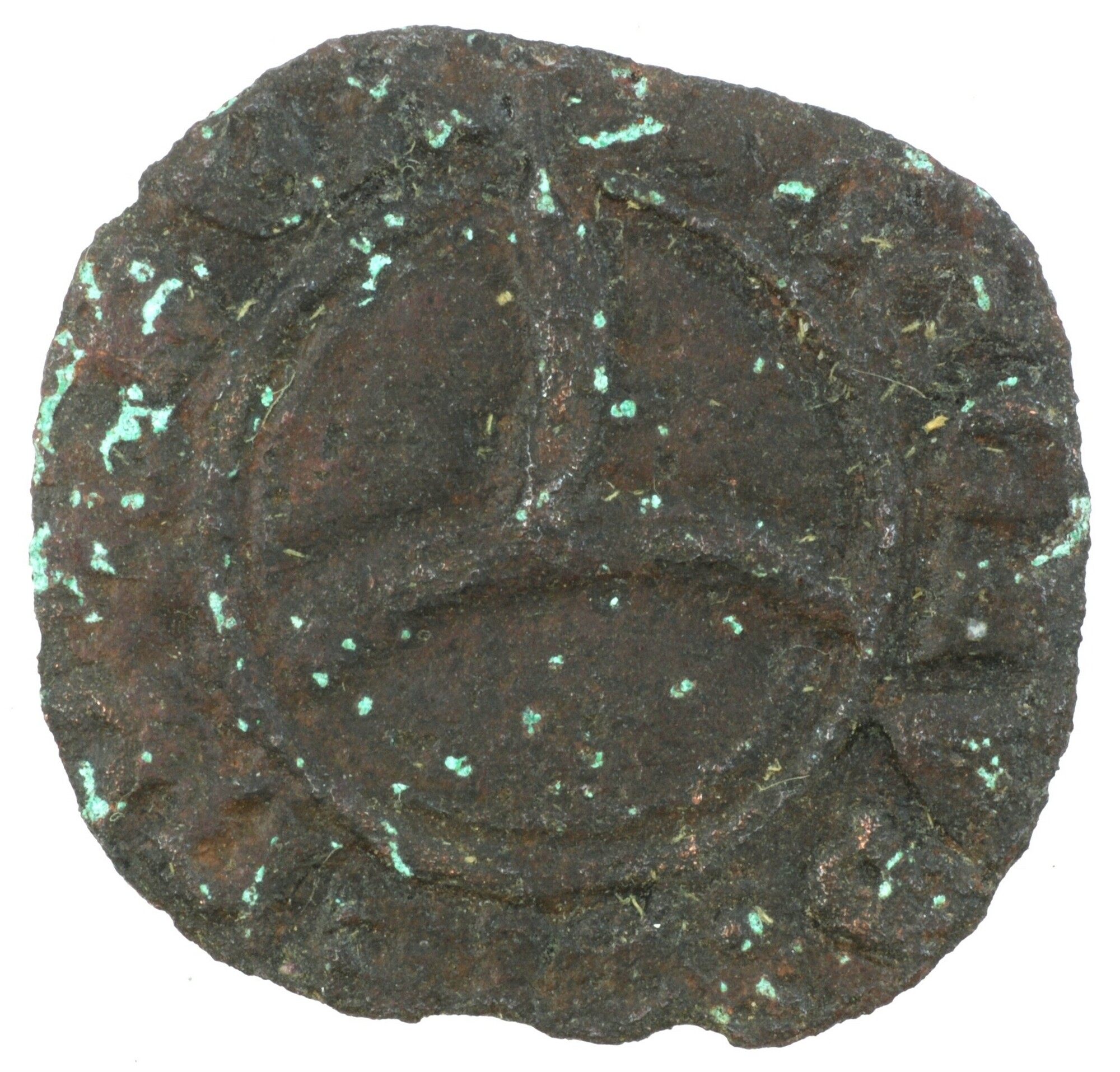 Penny; type IIa; Schotland; James III (1460-1488); vz.: rijksappel naar beneden gedraaid binnen parelcirkel, met omschrift +IACOBVS [DE]I [GR]A REX; kz.: Latijns kruis binnen vierpas en parelcirkel, met omschrift +oCRV[XoPEL]LI[T]oOIE[oCRIM]o (interpunctie twee cirkels boven elkaar); muntplaats: Edinburgh; gewicht: 0.98 gram; zeldzaam; referentie: Seaby / Purvey 5307 var (op voorzijde geen interpunctie, keerzijde cirkels)