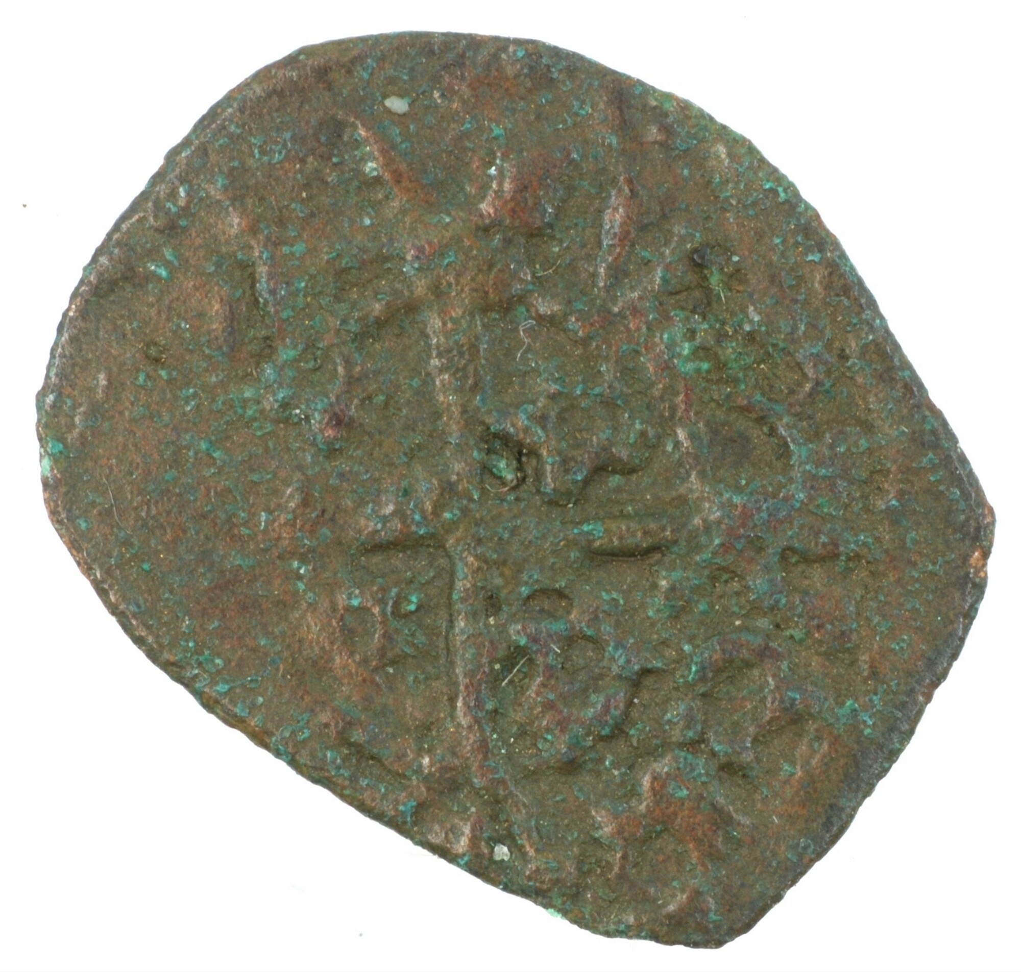 Farthing, type II; Schotland; James III (1460-1488); vz.: drie lelies binnen driepas en parelcirkel; kz.: lang kruis met gebloemd uiteinde met ruitersporen in de kwadranten binnen parelcirkel, met omschrift [MO / PA] / VP / ER; muntplaats: Edinburgh; gewicht: 0.36 gram; referentie: Seaby / Purvey 5314