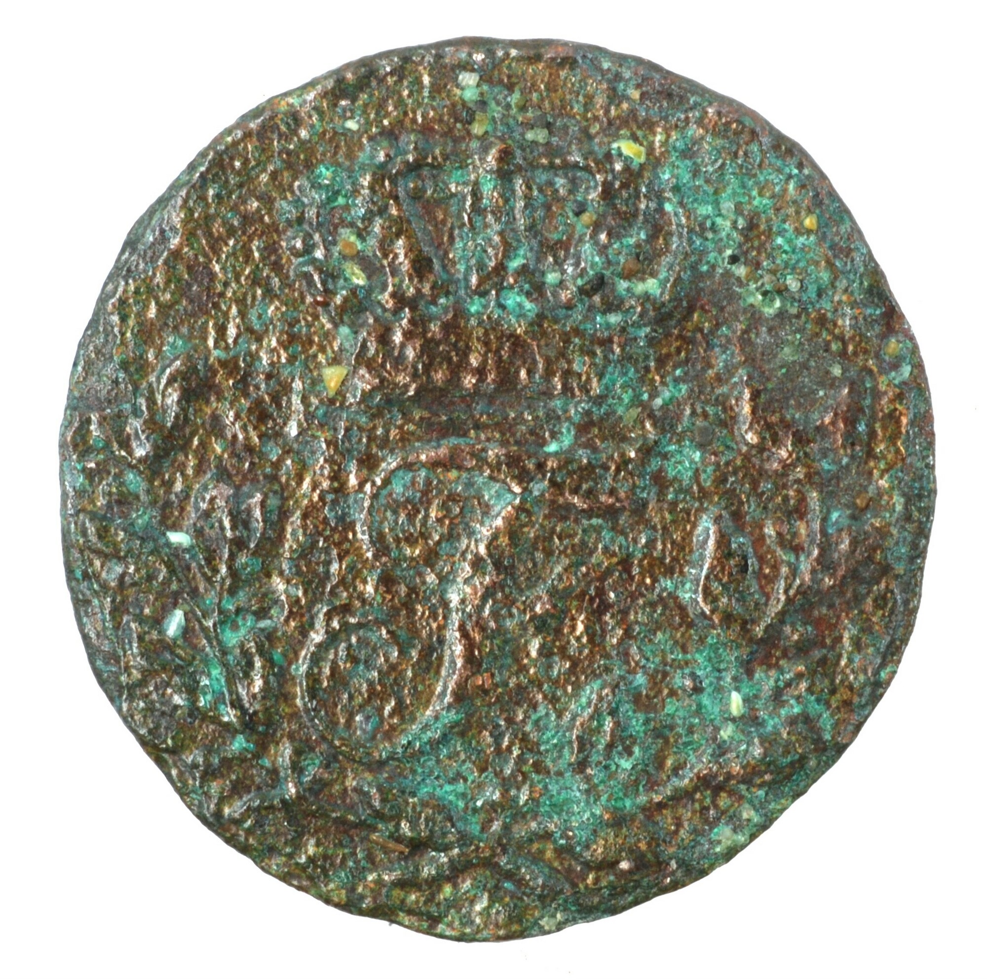Öre; Zweden Koninkrijk (1581-heden); Frederik I (1720-1751); vz.: in vier regels: twee kronen / 17 kroon 33 / 1• ÖR[•] / G•Z•; kz.: gekroonde F met naar beneden gaande bladerkransen; muntplaats: Stockholm; gewicht: 0.91 gram; referentie: Krause / Mishler 382 (de munt zou van zilver moeten zijn, maar lijkt dat niet, vervalsing?)
