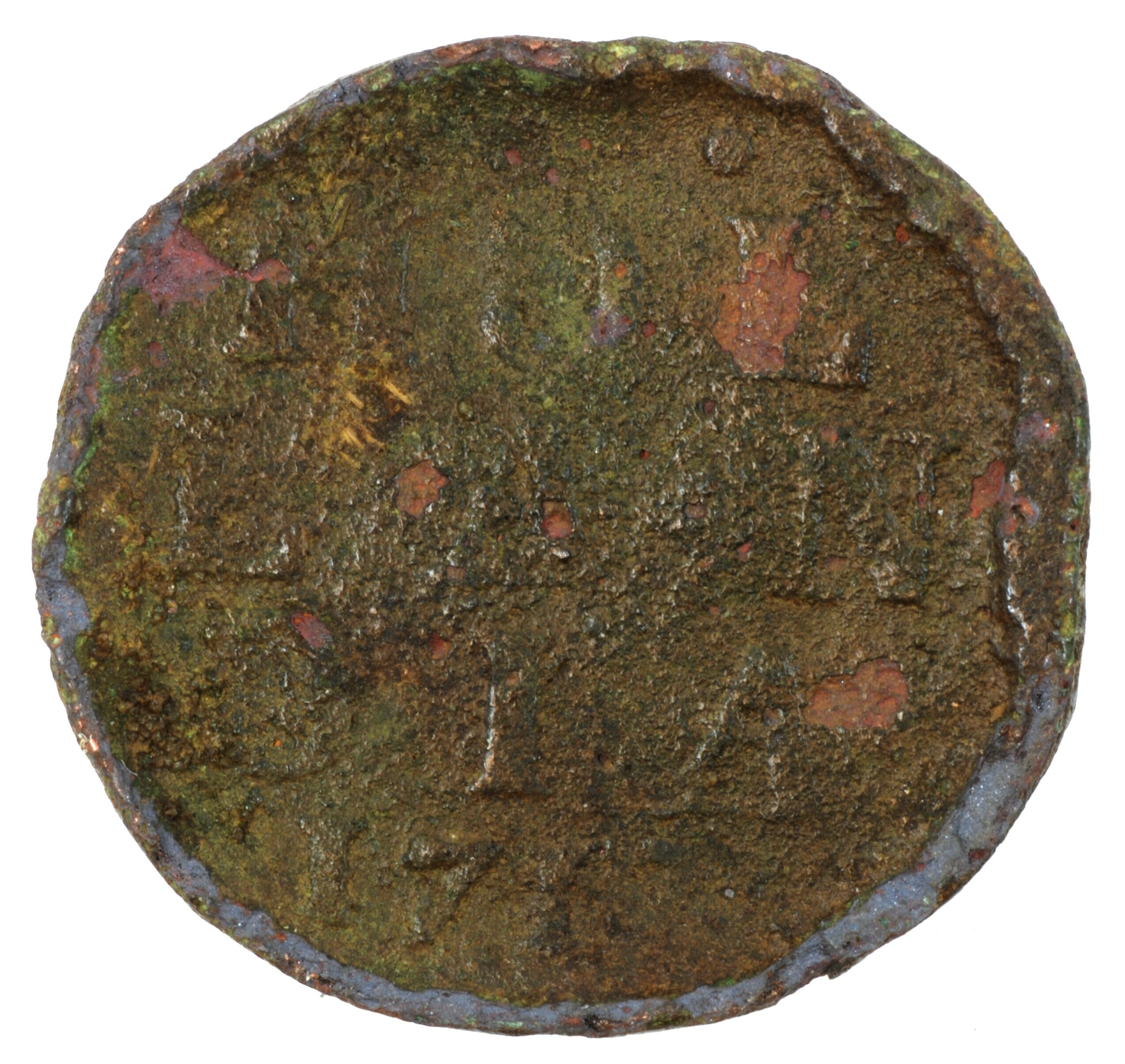 Duit; Holland Provincie (1581-1795); vz.: in vijf regels: [• (rozet)] • / HOL / LAN / DIA[•] / 1713; kz.: klimmende leeuw naar links met vrijheidshoed en een lans binnen de Hollandse tuin; muntplaats: Dordrecht; 2.34 gram; referentie: Purmer / Wiel 2007, CNM 2.28.126 (verdikte rand)